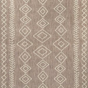 nuLOOM Leigh Ethnic Stripes Indoor/Outdoor Area Rug, 8′ x 10′, Light Gray