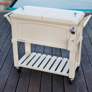 Permasteel PS-206-SS 80 Quart Rolling Patio Cooler with Bottom Tray, Stainless Steel