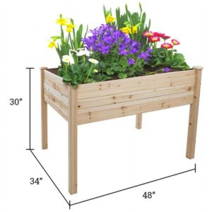 Raised Fir Wood Garden Planter – 48″L x 34″W x 30″H – Tool Free Assembly