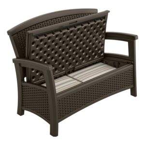 Suncast 73-Gal. Weather-Resistant Resin Outdoor Deck Storage Box and Bench, Java