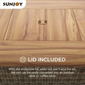 Sunjoy 40 Inch Fire Pit for Outside, Outdoor Round Wood Burning Fire Pit with Steel Mesh Spark Screen, Ceramic Tile Tabletop and Fire Poker, Large Bonfire for Patio and Backyard