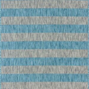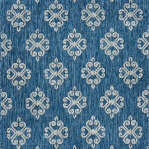 Veranda Transitional 5′ x 7′ Indigo and Light Gray Polypropylene Outdoor Area Rug