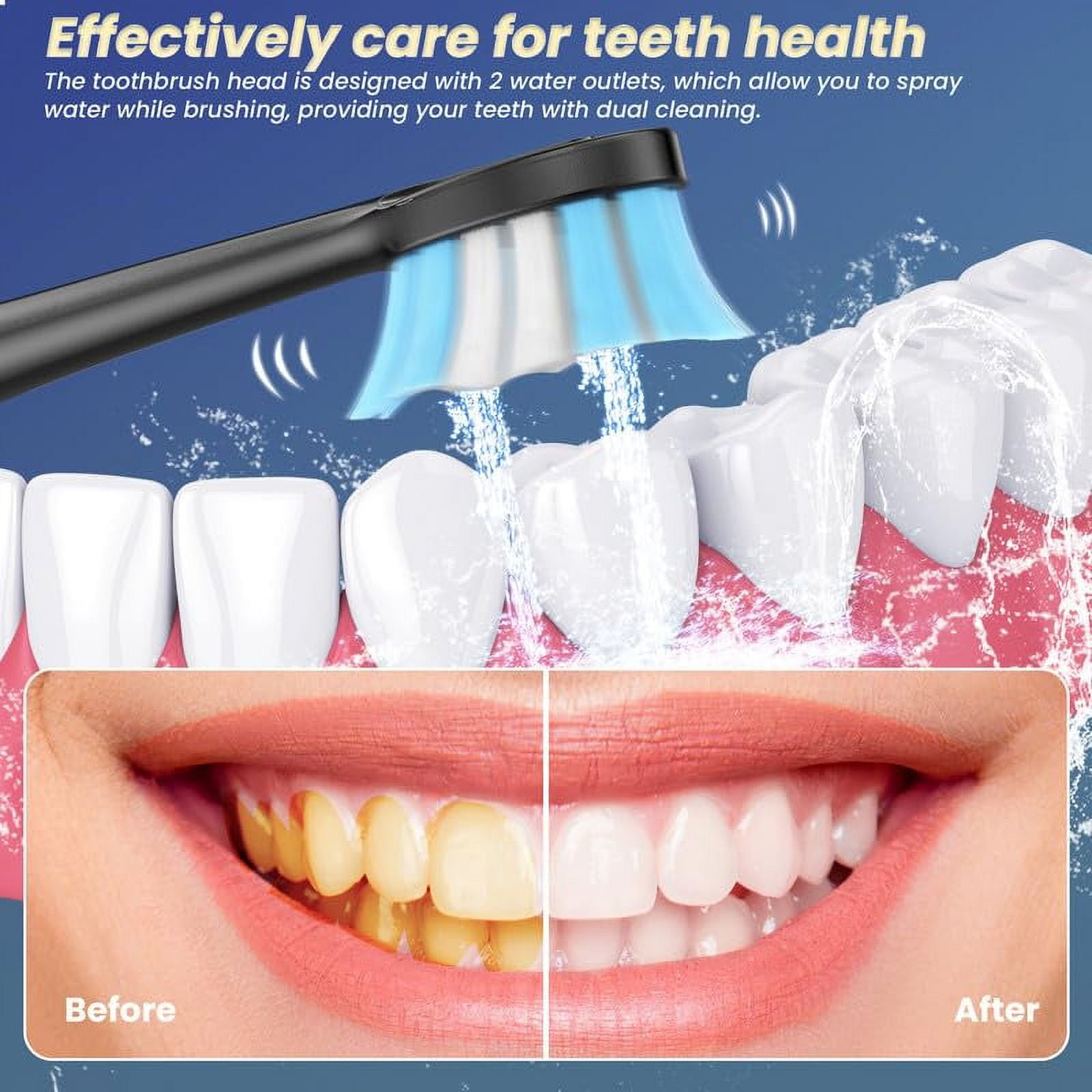 $42.99Original price was: $42.99.$38.69Current price is: $38.69.Our electric toothbrush combines brushing and water flosser in one,Switch from brushing to flossing with ease. it can spray water and brush at the same time. 3 Water Pressure: Strong, Soft, Pulse 4 Brushing Modes: Clean, Soft, WH./PL, Polish The sonic toothbrush cleans the surfaces of your teeth while the water flosser in the center of the brush head cleans between teeth and below the gumline where toothbrush bristles can’t reach.Effectively keep oral health!