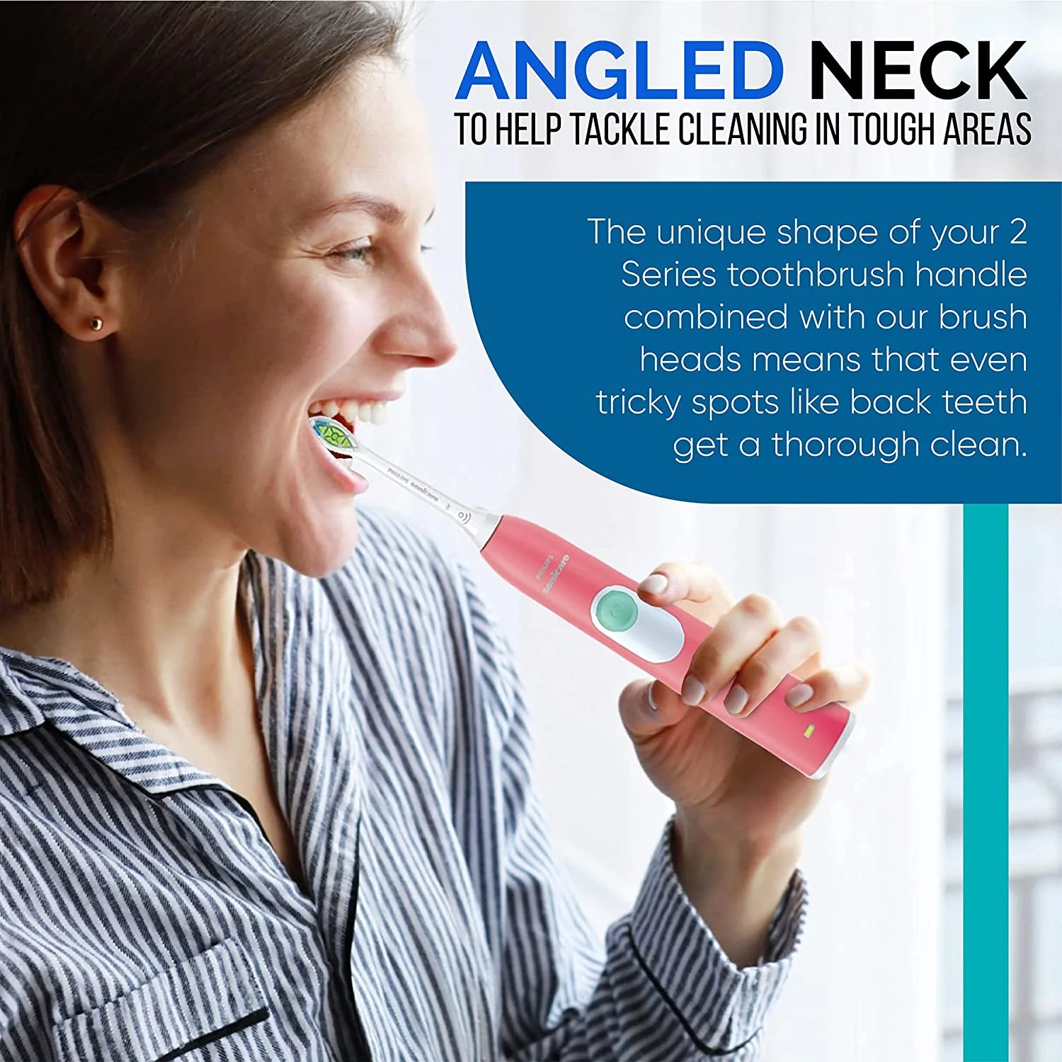 $64.33Up to 7x more plaque removal than a manual toothbrush – Densely-packed, high-quality bristles remove up to 7x more plaque than a manual toothbrush. Better plaque removal to help reduce cavities – Provides better plaque removal and access to back teeth; brushing twice a day every day with this brush can help reduce cavities Philips Sonicare’s advanced sonic technology – Philips Sonicare electric toothbrush’s unique dynamic action gently and effectively reaches deep between teeth and along the gumline. Safe and gentle for your oral health needs – Whatever your specific needs, you can be sure of a safe brushing experience with the 2 Series plaque control. Our sonic technology is suitable for use with braces, fillings, crowns and veneers, and can even be used in the daily treatment of gum disease. Angled neck to help tackle cleaning in tough areas – The unique shape of your 2 Series toothbrush handle combined with our brush heads means that even tricky spots like back teeth get a thorough clean. Easy start program builds your Philips Sonicare routine – Starting something new can take some getting used to. Our easy-start program gives you the option of a gradual, gentle increase in brushing power with the first 14 uses with your new toothbrush. Timers encourage thorough 2 minutes of brushing – It takes just 2 minutes to thoroughly brush your teeth. Our QuadPacer lets you know when you’ve spent the optimal amount of time on each section of your mouth while our SmarTimer signals when your total time is up. Together they help you reach your recommended brushing time, every time.