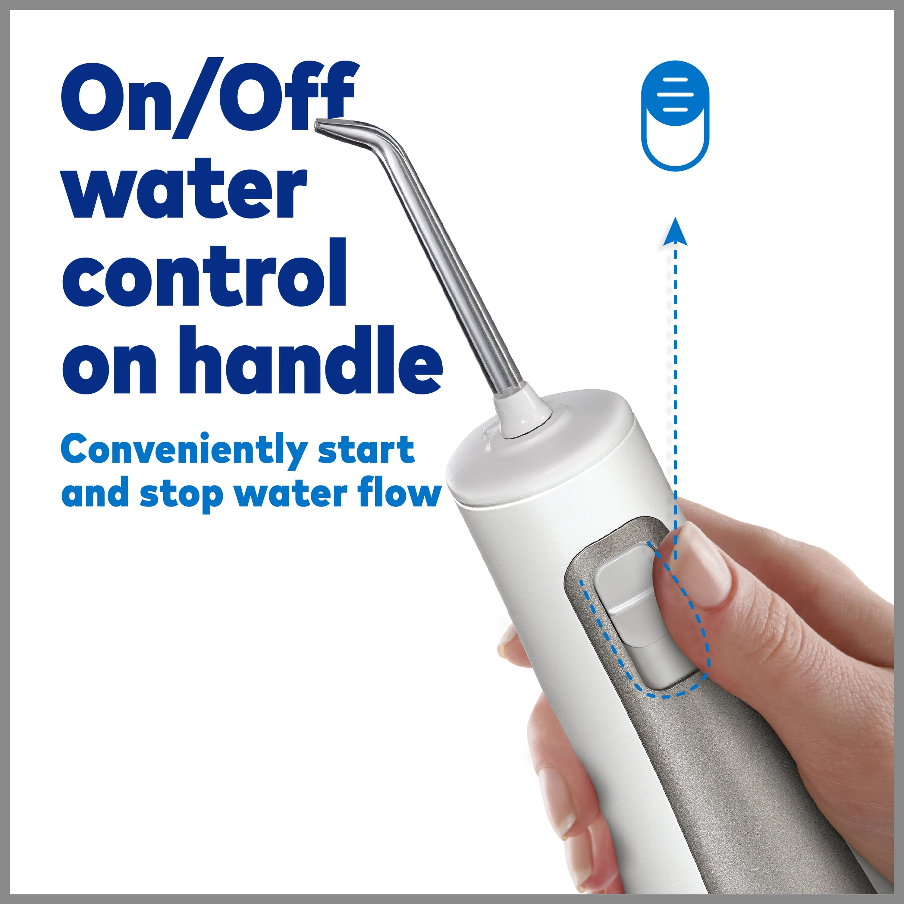 $46.52Battery operated, portable, and waterproof design makes the Cordless Freedom perfect for small spaces, travel, and use in the shower. Tested and trusted, Waterpik is the #1 water flosser brand recommended by dental professionals. From the first brand in its class accepted by the American Dental Association (ADA) for safety and effectiveness, the Waterpik Cordless Freedom water flosser removes up to 99.9% of plaque and is clinically proven up to 50% more effective than string floss for improving gum health. The Cordless Freedom provides a unique combination of water pressure and pulsations to clean deep between teeth and below the gum line, removing harmful bacteria and debris that traditional brushing and flossing can’t reach. An easy and effective way to floss, the Waterpik Cordless Freedom in White portable dental water flosser features two pressure settings and is a great solution when you want the convenience of water flossing in the shower or on the go.