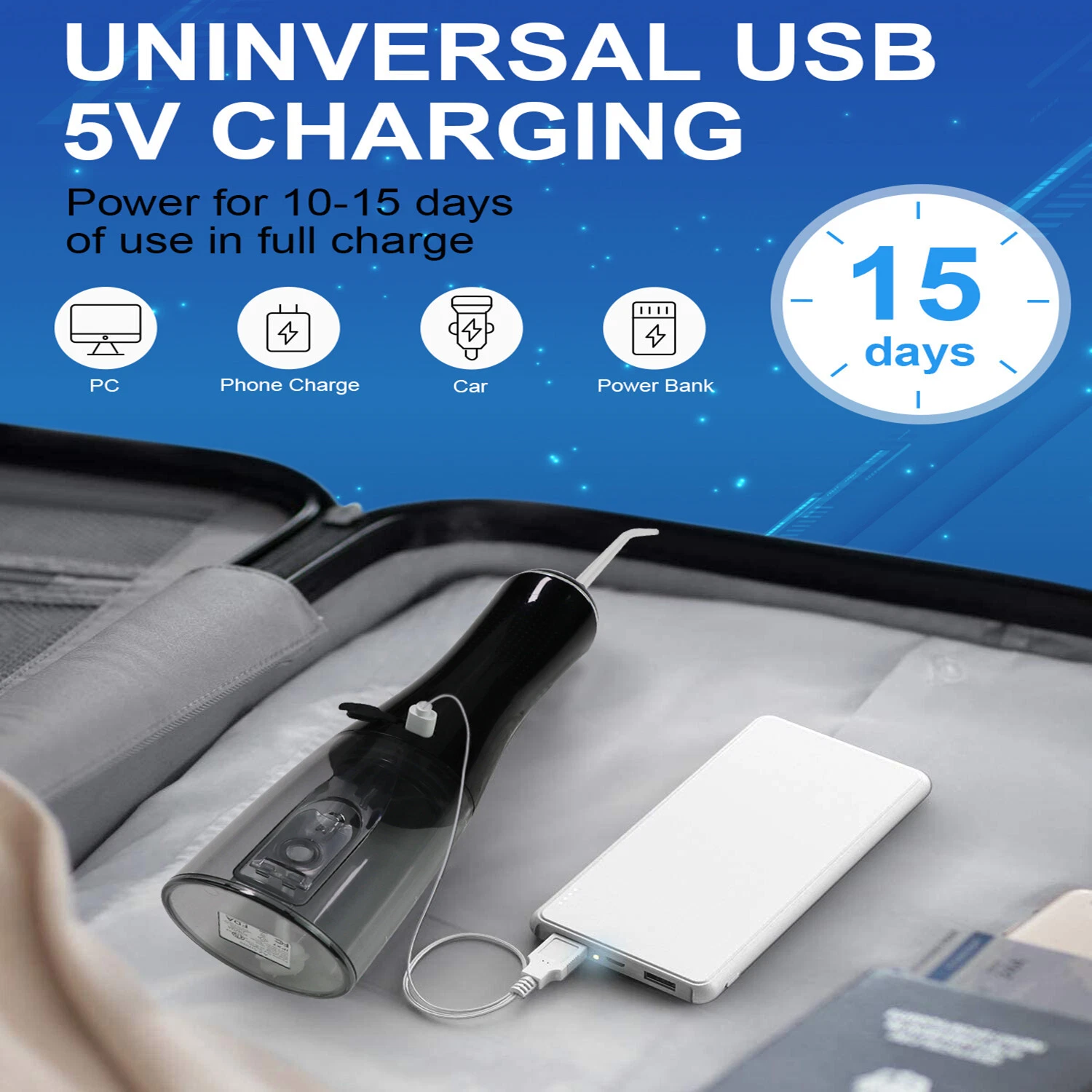 $42.96350ML Cordless Water Dental Flosser for Teeth Cleaning IPX7 Waterproof Rechargeable Portable OLED Display Oral Irrigator with Travel Bag and 8 Nozzles As dentist study suggested, only brushing teeth is far from enough to clean your mouth. Because of the complexity of oral structure, traditional toothbrush will just finish cleaning job on teeth surface. Cumulative plaque, dental calculus and food bebris stuck between teeth will be hard to clear. String floss may help solve the problem, but everytime it takes a lot of time and hurts gum and tooth enamel. MySmile Water Dental Flosser will solve all your worries, it helps thoroughly remove the plaque from your teeth, prevents bad breath, cavities, gum disease and keeps your mouth healthy. When used with teeth whitening products, the teeth will be whitened faster and more effective. Its portable design allows you to use at home, in office, after party, in travel anytime and anywhere. A super easy and effective way to solve your oral problems and highlight your confident and charming smiles. Great to remove 99.99% food residue hidden deep, massage the gum effectively and promote blood circulation! Detachable Water Tank The water reservoir is easy disassembled to fill water or clean scale incrustation; Also can add water from the door designed on the tank. Smart OLED Display Unique OLED screen will display mode, water temperature, water quality and remaining battery power for convenient use. 360 Degree Rotation 360° rotating nozzle will lead to thorough teeth cleaning for hidden areas that traditional toothbrush and jet dental floss are difficult to reach. USB Charging Equipped with a type-C USB power cord to easily charge the machine when connected to computer, power bank or device with USB port at anytime and anywhere. Large-capacity Battery Built-in 1800mAh rechargeable lithium battery, it will last for 15-20 days when fully charged. 6 hours fast charge allows you floss continuously for about 30 times. IPX7 Water Resistant IPX7 waterproof design is adopted in both interior and exterior to provide dual protection. Allows you to use the oral irrigator safely for shower in bathroom. Travel Design The compact design makes it easy to use at home or