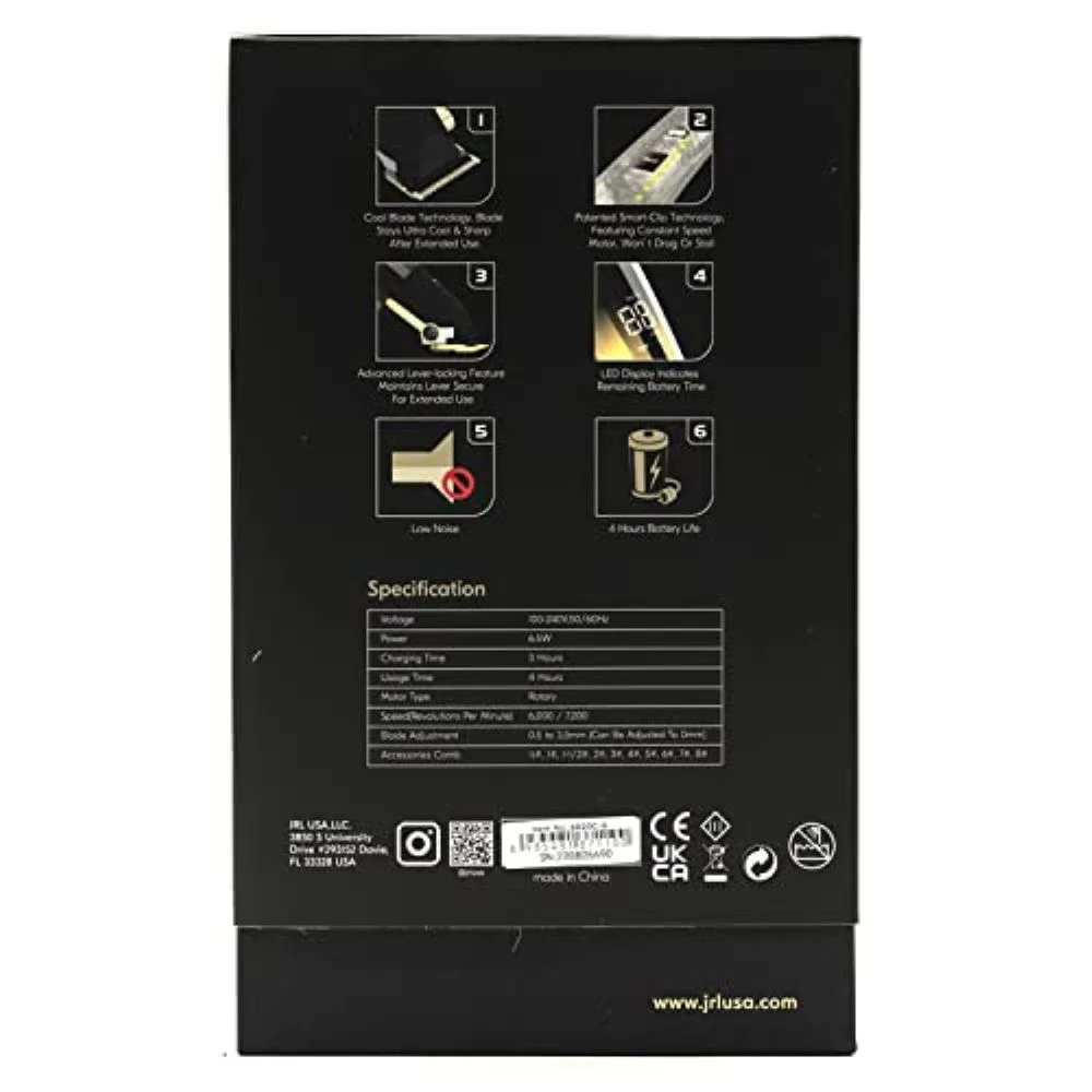 $120.39360 Exposed Ultra Sharp T shape blade. Patented Smart Clip Technology. Blade stays cool and Sharp after extended use. 2 Hours batery life. 7,200 Revolutions Per Minute. Superior Motor: 3 times more powerful on torsion than most trimmers on the market. Quiet Motor: Quiet motor, under 60dB, creates quiet working environment. Global Universal Voltage 100-240V. Stainless Steel blade Ideal For lining designing and dry shaving. Hanging Hook. Accessories: 1 Screwdriver, 1 Brush, 1 Lubrcant, 1 Blade Protector, 1 US Plug Charging Dock Is Not Included