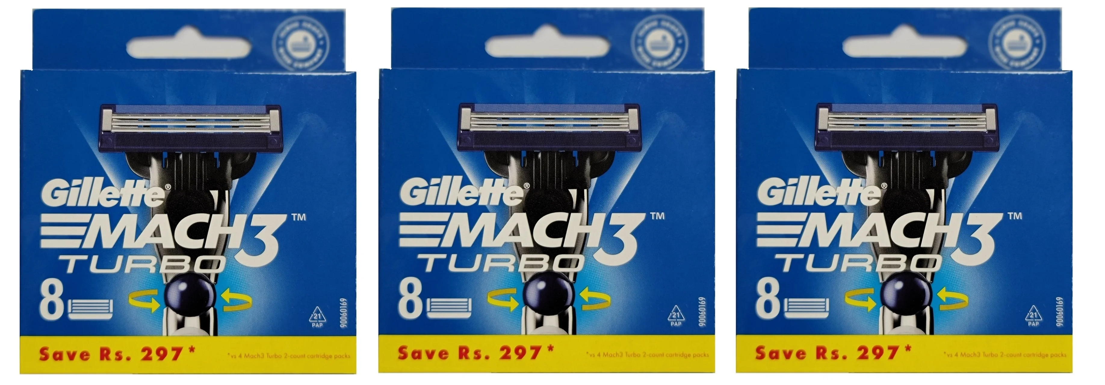$45.57It has 3 stronger-than-steel blades that stay sharper longer. With sharper, Turbo cutting blades (first 2 blades vs. MACH3), a MACH3 Turbo blade refill is engineered to last 15 comfortable shaves. These Gillette razors feature a long-lasting lubrication strip that provides an incredible glide. It has a micro fin skin guard that stretches the skin and prepares hair to be cut. MACH3 turbo men’s razor blade refills fit all MACH3 razors. 15 blade refills Gillette razors for men with stronger-than-steel blades stay sharper longer vs Sensor3.