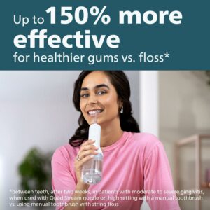 $68.77Discover effortless and convenient flossing that’s 150% more effective than string floss in improving gum health! The Philips Sonicare Power Flosser 3000 Cordless has a sleek design that’s easy to hold, 14-day battery life, large reservoir (no need to stop mid-clean to refill!), and is waterproof — all for ultimate convenience. The unique Quad Stream technology creates an X-shaped stream of water that reaches deep between teeth, covering more surface area for a faster, deeper clean. Philips Sonicare Power Flosser 3000 Cordless enables you to improve your gum health by 50% in just 1 minute per day! 1 Cordless Power Flosser, 2 Nozzles (Quad Stream and Standard), 1 USB power cord, 1 power adapter. Power flosser, Mint.