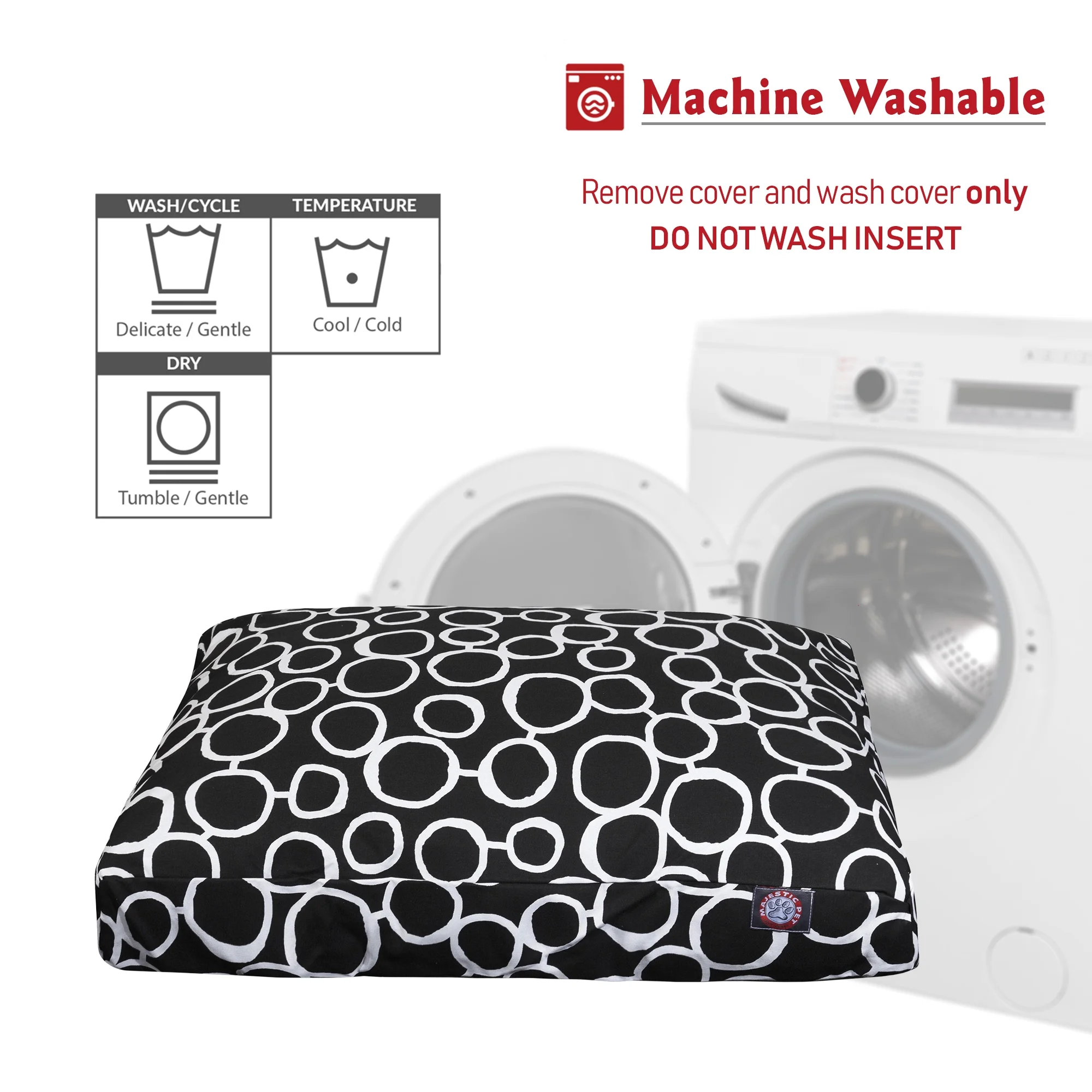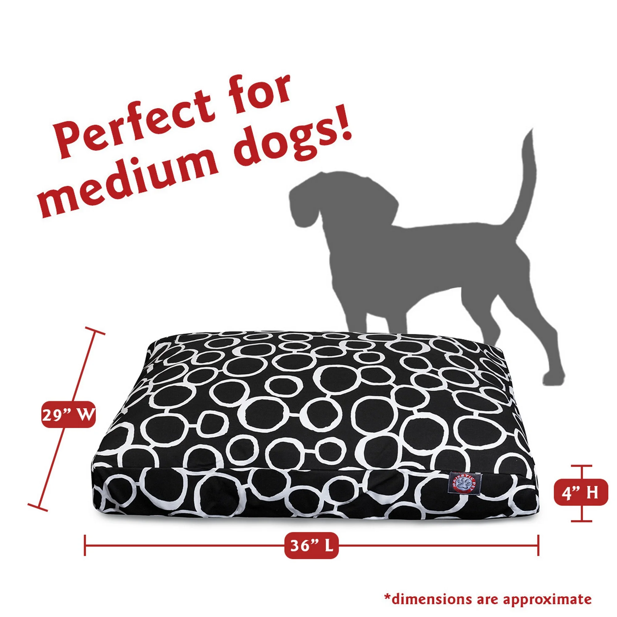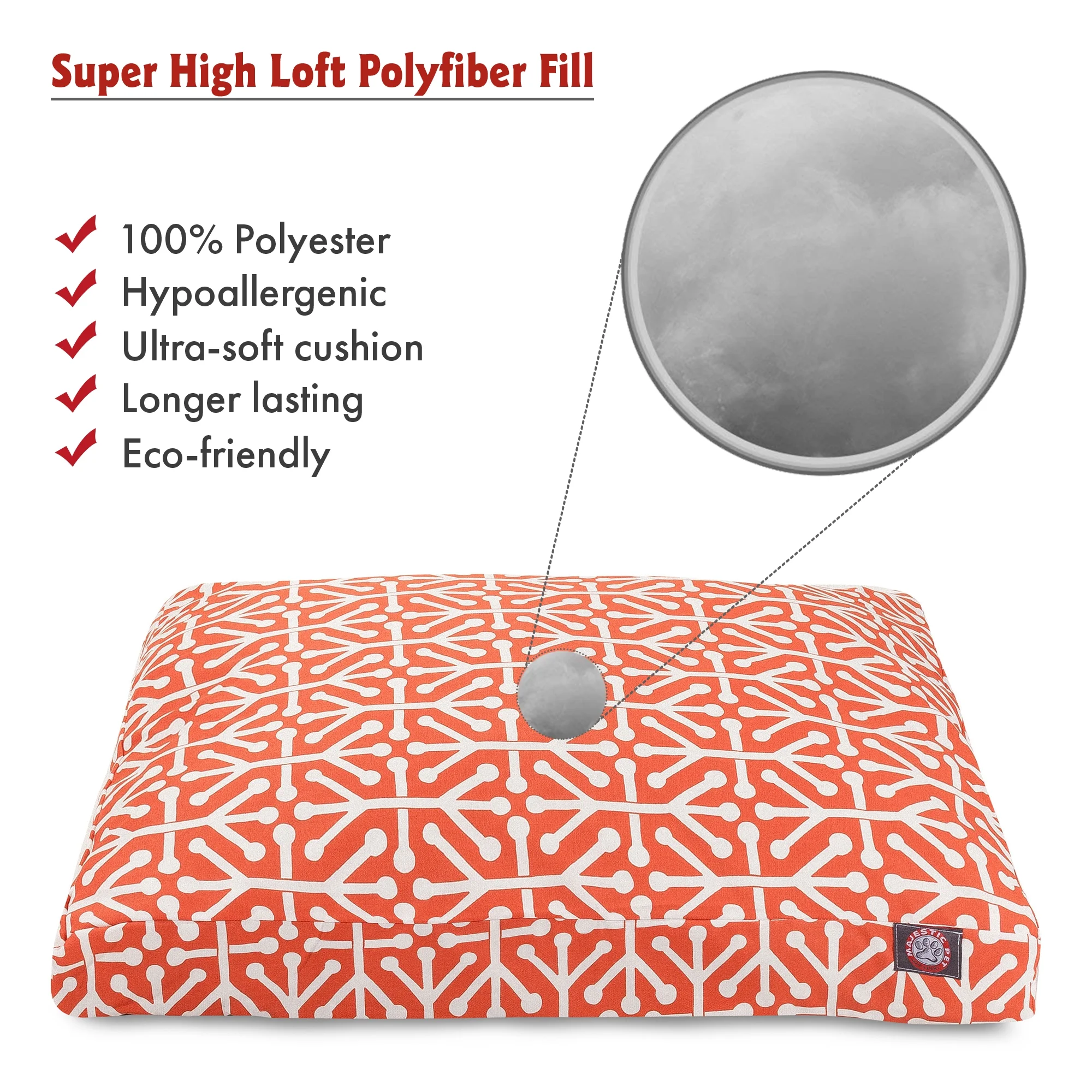 $74.81Show how much you care by giving your pet a bed that might be more comfortable than your own. The Majestic Pet Outdoor and Indoor Rectangle Pet Bed is the perfect combination of style, function and comfort. It features a removable zippered slipcover that is woven from durable Outdoor Treated polyester with 1000 hours of UV protection, water and stain resistance. The base of the bed is made of heavy duty water-resistance 300/600 Denier fabric, which allows you to move your pet wherever you are, inside or out. Each bed is filled with a premium high loft polyester fiber fill that provides ample amounts of comfort.