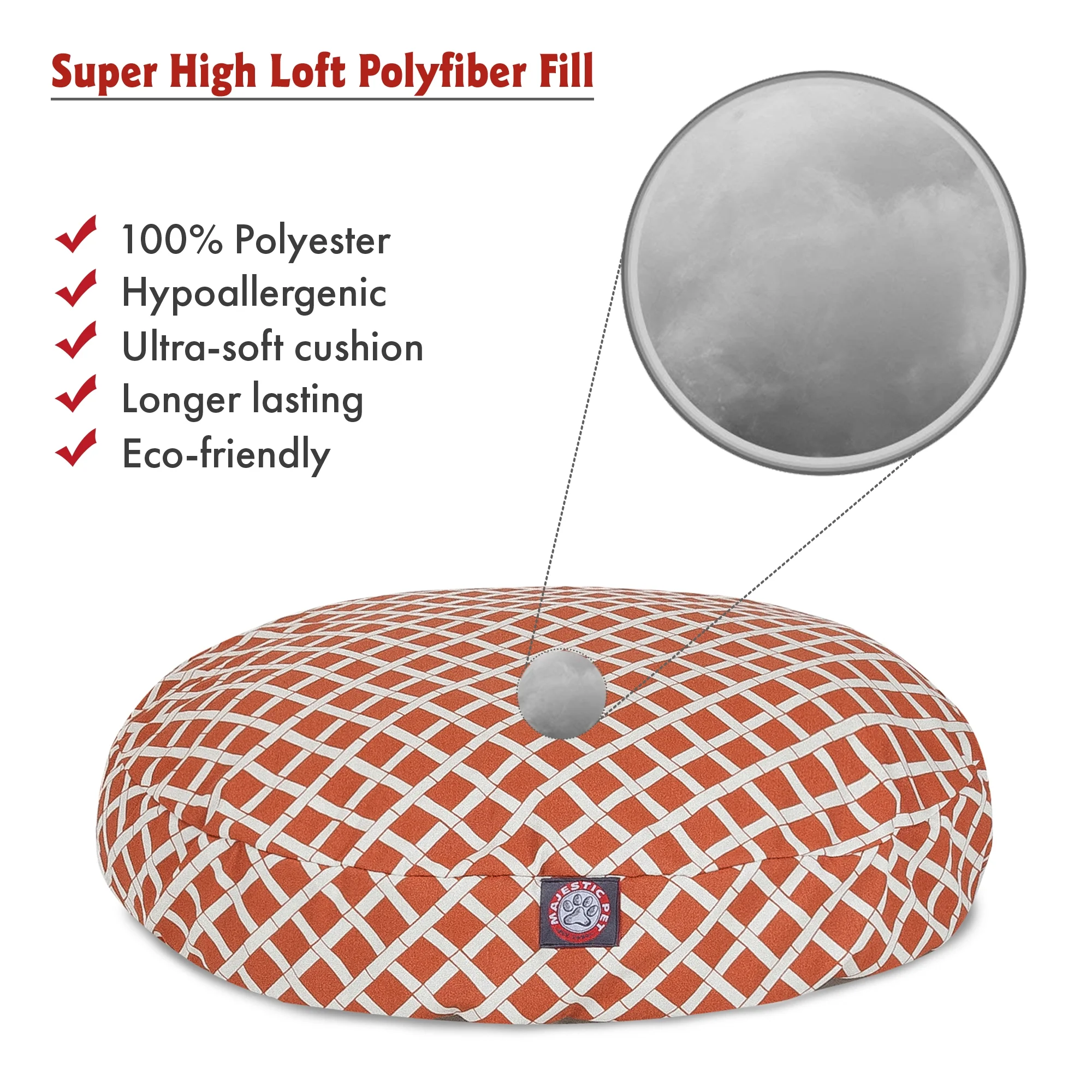 $53.14Original price was: $53.14.$44.63Current price is: $44.63.Show how much you care by giving your pet a bed that might be more comfortable than your own. The Majestic Pet Round Bed is the perfect combination of style, function and comfort. It features a removable zippered slipcover that is woven from durable Outdoor Treated polyester, with 1000 hours of UV protection. The base of the bed is made of heavy duty water-resitant 300/600 Denier fabric, which allows you to move your pet wherever you are, inside or out. Each bed is filled with a premium plush fiberfill that provides ample amounts of comfort