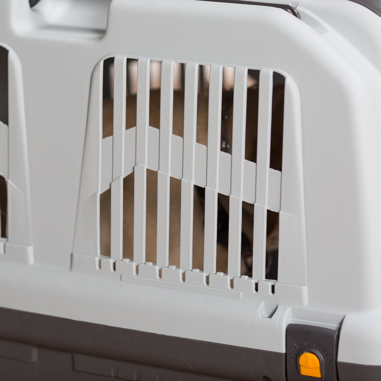 $137.59Original price was: $137.59.$116.09Current price is: $116.09.Approved for most major airlines, the Midwest Skudo Plastic Pet Carrier is the ideal solution for your traveling pup. Made of durable plastic, this pet carrier features a metal grid door and a convenient carrying handle. Snap-lock buckles ensure easy assembly while slit vents provides circulation and optimal visibility. Available in a variety of sizes, this pet carrier is sure to provide your pup with the necessary needs to be safe and comfortable while traveling. Dimensions: X-Small: 18.875L x 12.75W x 12.75H inches Small: 21.5L x 14W x 13.75H inches Medium: 23.625L x 15.75W x 15.125H inches Intermediate: 26.75L x 18.75W x 20.125H inches Large: 31.375L x 23.125W x 25.5H inches X-Large: 36.25L x 24.875W x 27.25H inches
