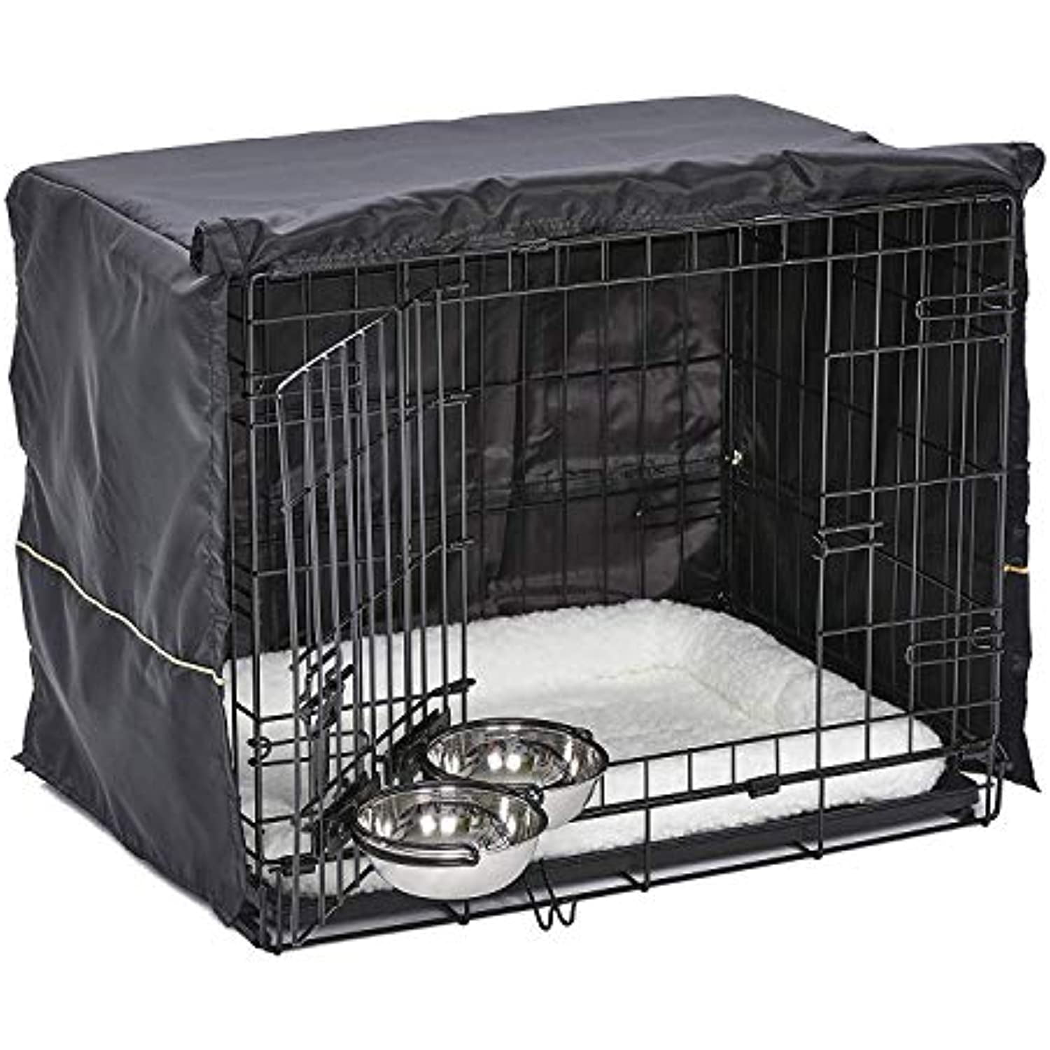 $77.38MidWest homes for pets want to help you minimize the stress of having a new puppy while maximizing your enjoyment with your new best friend. We designed this kit to ensure your puppy has a smooth transition into its new forever home. With proper use of the dog crate, your puppy will learn how to be housetrained quickly and with fewer accidents. The pet bed will create a cozy atmosphere for your pet & the privacy crate cover reduces anxious behavior & creates a more den-like home your dog instinctually desires. This specific kit features a 24-inch long double-door dog crate that is ideal for small dog breeds. This dog crate measures 24L x 18W x 19H – inches, and the pet bed and crate cover are also machine washable & dryer safe.