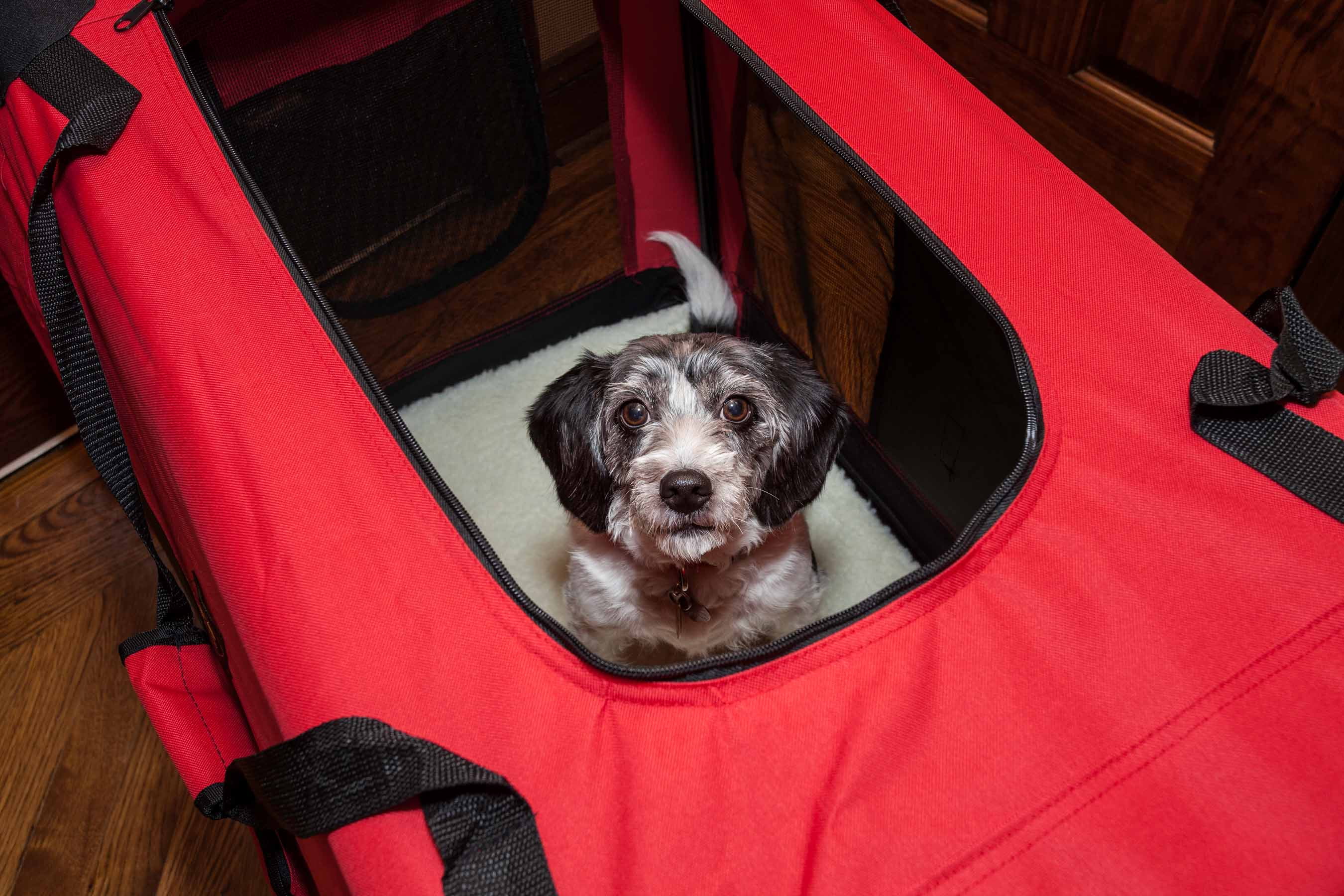 $55.90The Aspen Pet Pet Porter 32″ Travel Dog Kennel Portable Medium Pet Carrier for Dogs 30-50 lb, Gray – keeps pets safe and secure for travel and transport while giving pet owners peace of mind. Pets can travel comfortably in the kennel with plenty of air and visibility via the ventilation openings. The pet porter’s simple metal hardware allows easy assembly. The travel kennel has additional features that are offered depending on size, featuring carrying handles, back vents, compartment covers, and side latches for the smaller sizes and secure, tie-down holes for the larger sizes.