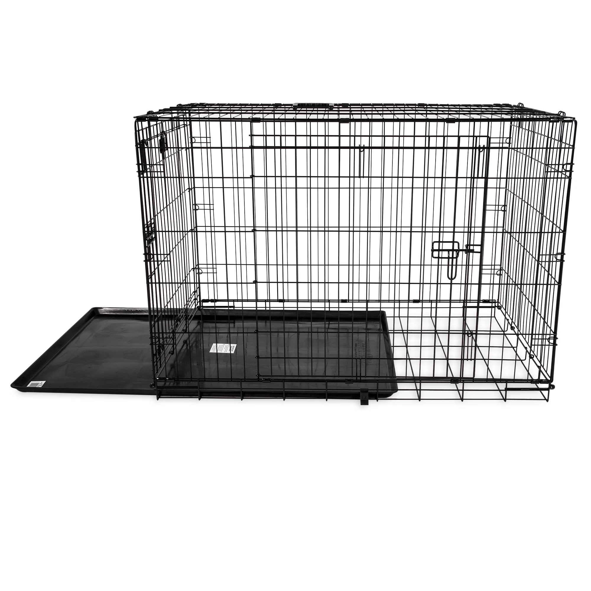 $67.80Pet Expressions Double Door Pet Crate| Keep your pet safe with our Pet Expressions Wire dog kennel. This kennel features double doors for your convenience with a front and side door that latch with not only two side bolt latches, but also requires you to lift the door as well, offering extra protection to help keep your pet from those occasional escapes. Our kennels are also equipped with a leak proof heavy duty plastic pan that is removable for easy cleaning and a detachable handle. Made of sturdy wire and with a double coating for a bright vibrant blue color, this kennel is perfect for any pet that likes to scratch, bite or try and dig their way out. Collapsible and foldable for easy storage and transportation.
