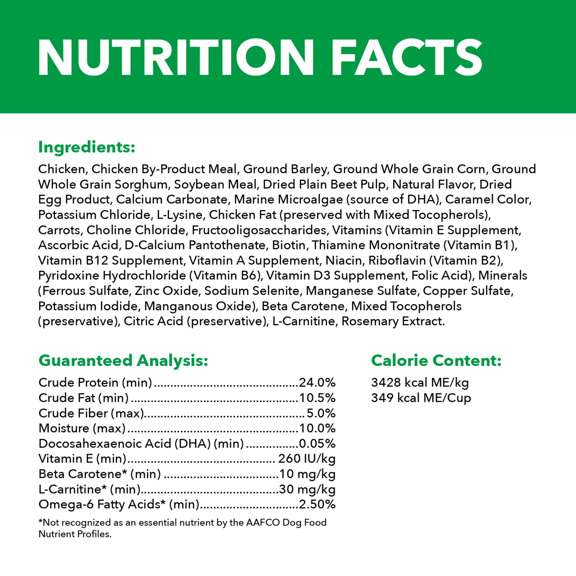 $40.40For every stage of life, there’s Iams nutrition Iams Proactive Health Healthy Aging Adult with Real Chicken Dry Senior Dog Food is formulated for the unique needs of senior dogs. As dogs enter the Healthy Aging period later in life, they tend to gain weight, lose lean body mass, and experience an immune response decline. Iams Proactive Health Healthy Aging recipes help your best friend maintain strong muscles and a healthy immune response with delicious dry kibble that is made to be lower in fat, higher in protein, and higher in Vitamin E and Beta-carotene compared to Iams Adult Minichunks recipes. Made with real chicken as the first ingredient, this premium recipe features no artificial preservatives* or flavors, and 0% fillers. With essential minerals like calcium and natural sources of glucosamine and chondroitin to support bone and joint health in senior dogs, this recipe is the perfect meal to keep your aging pup active and ready for life’s everyday adventures. Help keep your dog healthy, happy, and playful for life with tailored nutrition from Iams dog food. *Trace amounts may be present due to potential cross-contact during manufacturing