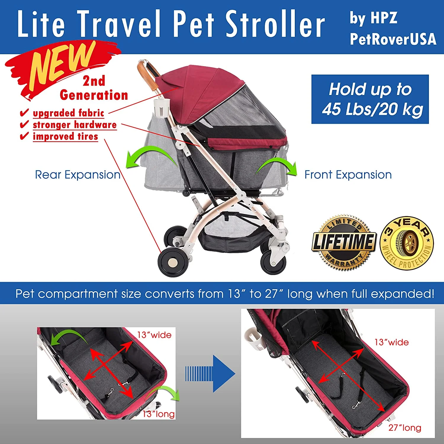 HPZ Rover Lite Travel Dog, Cat & Pet Stroller, Ruby Red