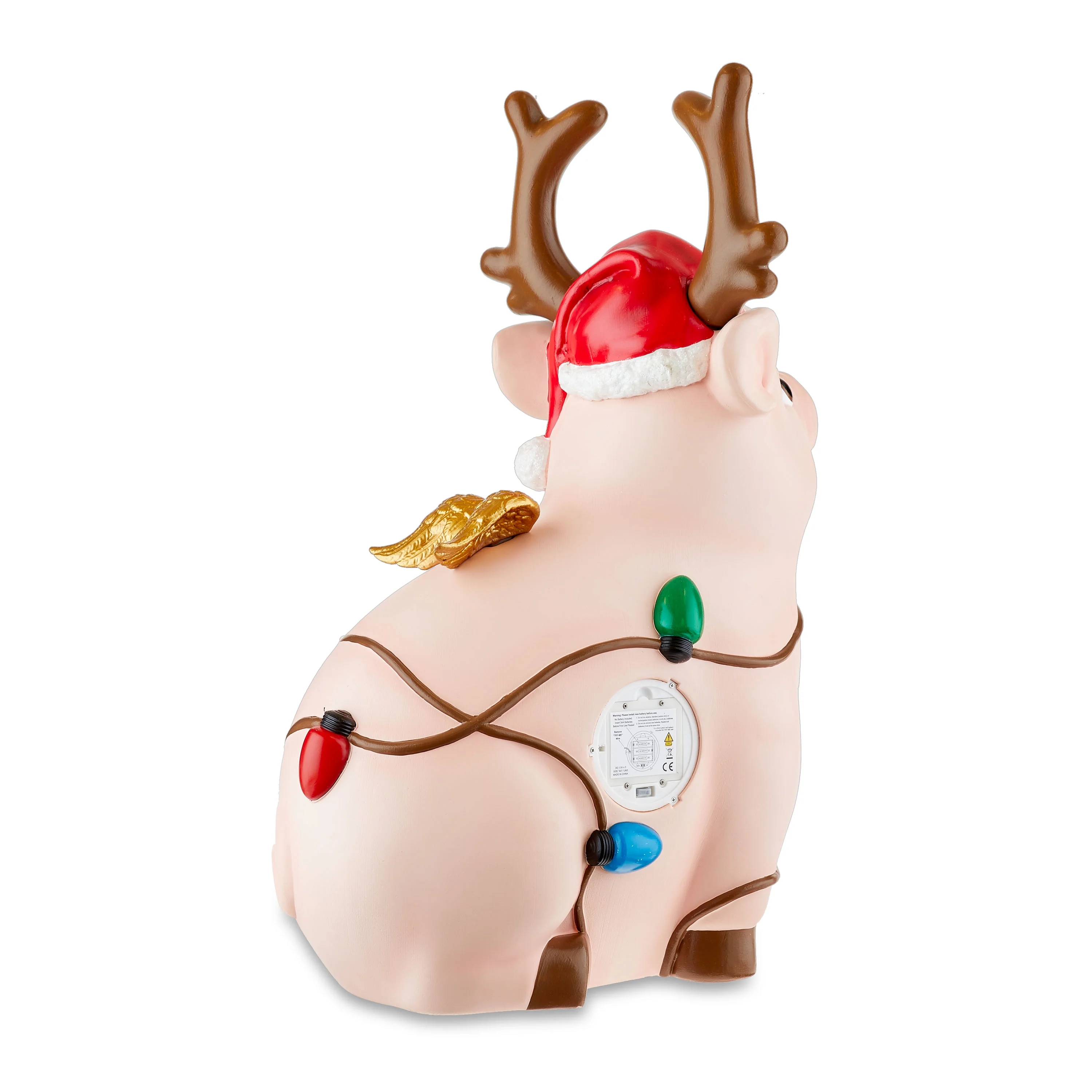 $38.70Our Holiday Time Blow Mold Light-Up Pig will bring a festive touch to holiday decorating. Wearing a Santa hat with antler and wrapped up in Christmas lights, this pig will fill any space with style and holiday cheer. Its adorable design makes it a versatile decor piece that complements practically any decor theme. Plus, the convenient flat base design works well wherever you want to place it, whether that’s in your living room, dining room, or entryway. It can be displayed alone for a festive touch or grouped with other decor items to create your own seasonal scene. Looking for more joyful decorations and accessories? Check out other Holiday Time products like lights, Christmas trees, tabletop decorations, ornaments, and more. Whether in your home or office, our Holiday Time Blow Mold Light-Up Pig will be the perfect addition to your space this year.