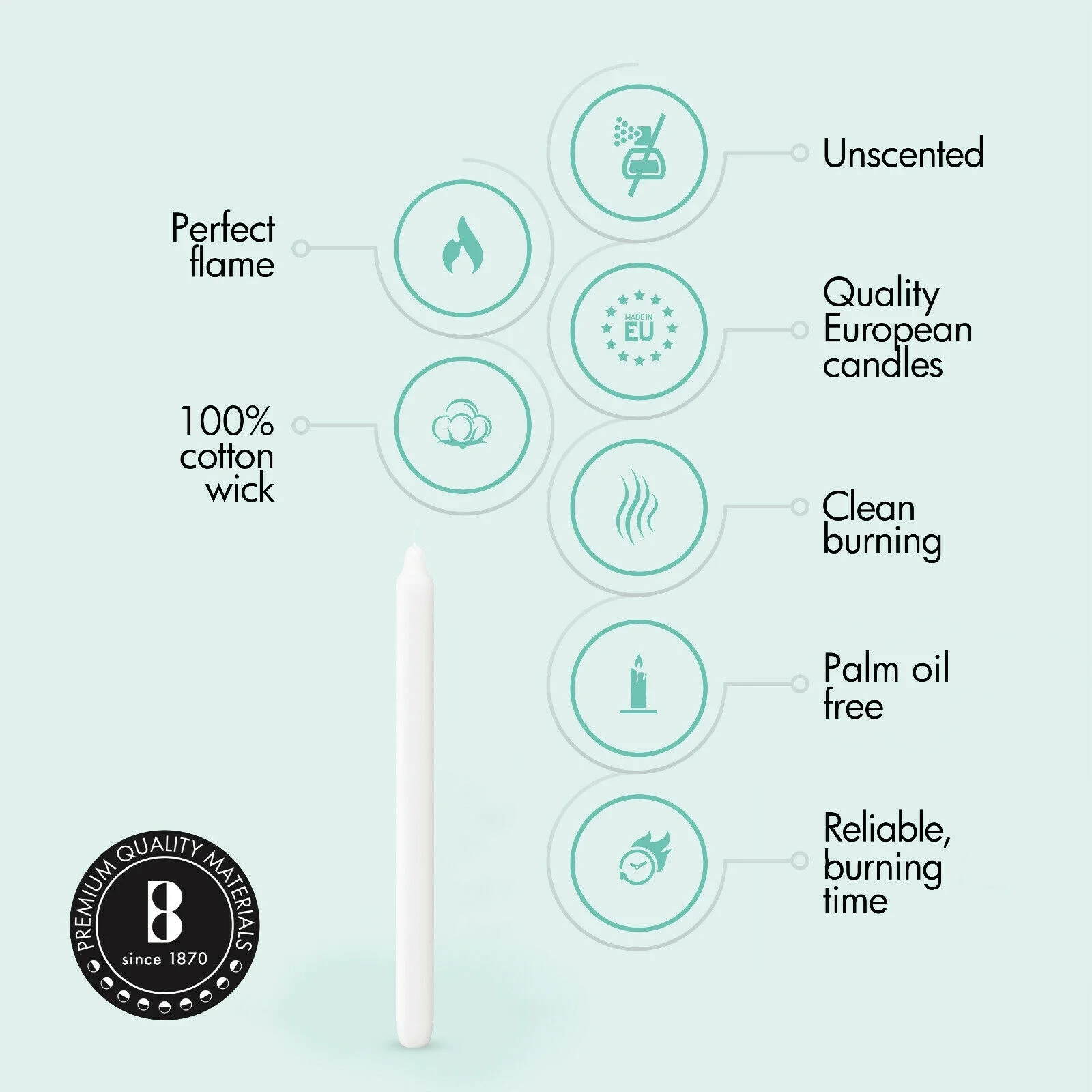 $50.72Bolsius Dripless and unscented taper candles improve your home décor without spending a fortune. Our tall and beautiful Smokeless candles are crafted from 100% Paraffin Wax for a pleasant flame. The braided wicks are made up of 100% Cotton, which is carefully dipped numerous times in supreme quality wax, to give it the perfect shine and elegant look. Since 1870, Bolsius has been offering various home decor and illumination accessories. We carry all types of taper candles in multiple colors such as White, Red, Ivory, wine red. Our catalog includes a full line of Pillar Candles, Floating candles, tealight candles, Rustic candles, Metallic Candles, Ball ball candles, And much more, Just search for our brands BOLSIUS, LERNER, LNE’R, KISCO, Looking forward serving you.