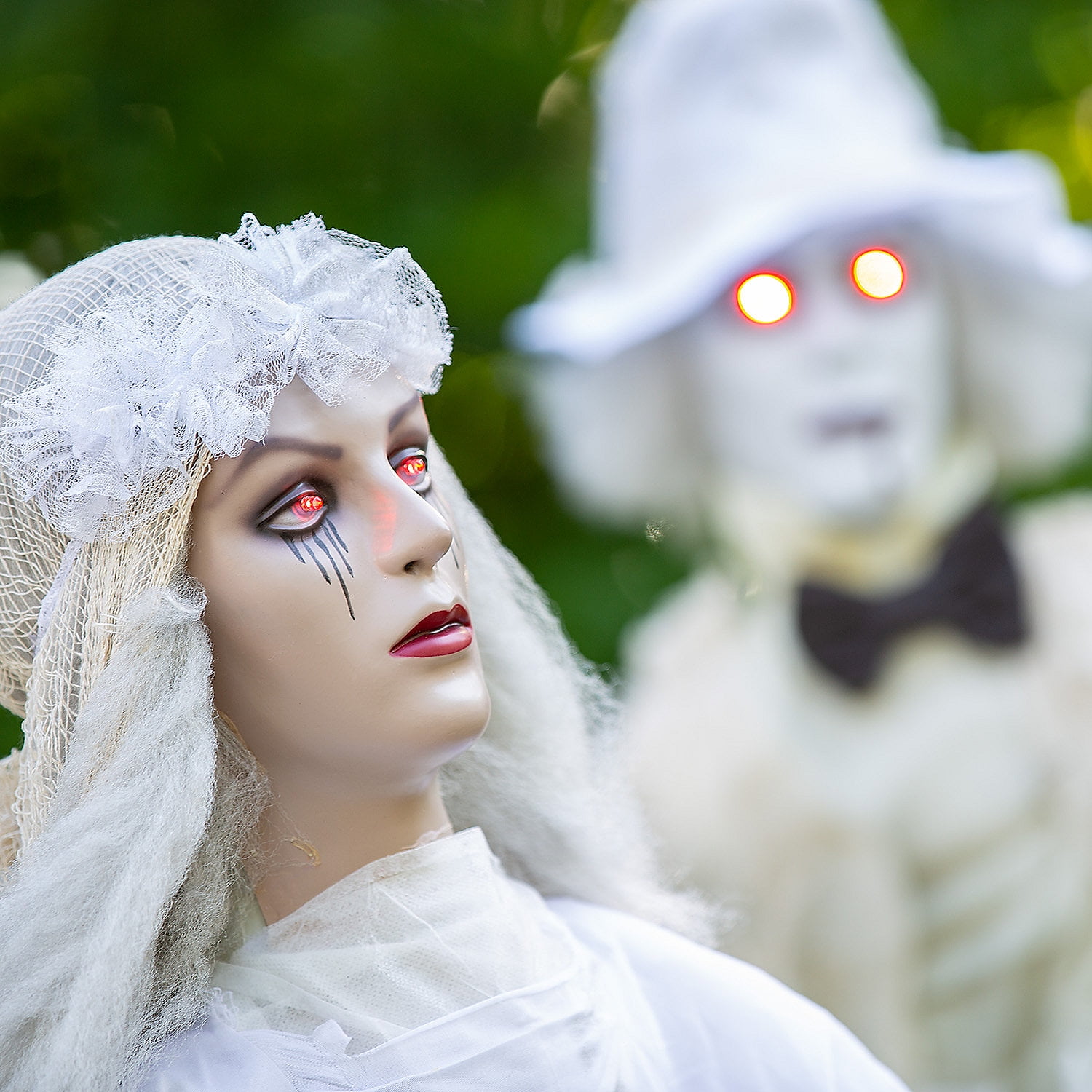$178.79Original price was: $178.79.$155.52Current price is: $155.52.This ghastly couple is sure to make a scream at your Halloween party! You can’t have one without the other, so add to your Halloween decorations and use these year after year. Whether they’re propped up inside or waiting for trick-or-treaters on your porch, they’re sure to be a hit. Plastic with polyester clothing. (2 pcs. per set) Adjusts up to 5 ft. 7″. Requires a total of 4 “AA” batteries, not included.