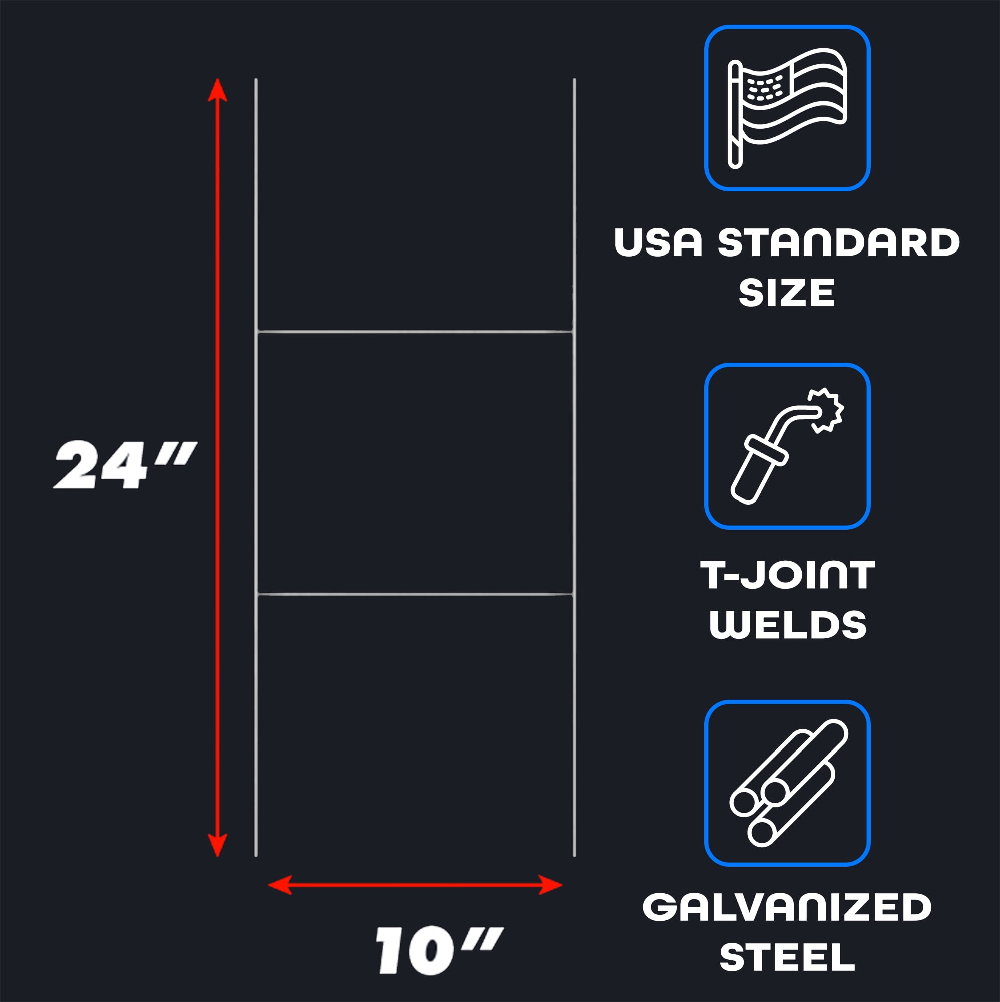 BINGLE 100 10x24in Steel Step-Stakes For Yard Signs 9-Gauge Galvanized Metal