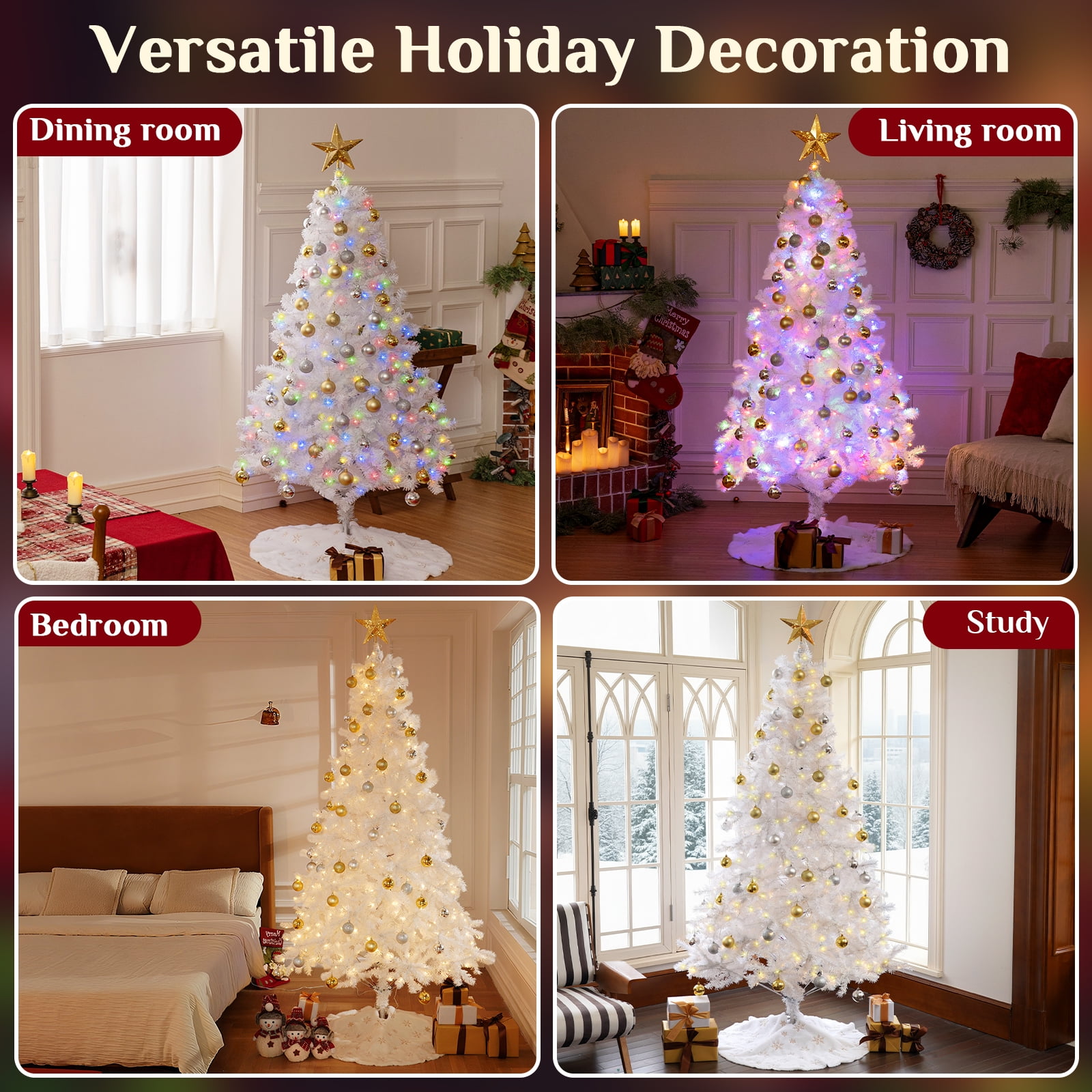 $111.79Original price was: $111.79.$73.09Current price is: $73.09.🎄Welcome to BSHAPPLUS Festive Delights! 🎄 7.5ft Pre-Lit White christmas tree is an artificial christmas tree from BSHAPPLUS featuring lifelike foliage painted multiple hues of white so no two are exactly alike. BSHAPPLUS produces the most realistic christmas trees in the market, offering all the long-term benefits that come with owning an artificial tree. Imagine never having to shop, chop and pay for another natural tree again. The artificial Christmas tree’s all-metal hinged branch construction simply unfolds out of storage, ready to bring seasonal enchantment to your space. The tree needles are constructed out of non-allergenic and flame-retardant materials,leave your old tangled string lights behind this year,simply unfold out of storage, fluff and decorate! The model comes pre-strung with 600 LED bulbs that emit both warm and colored light, evenly distributed and fixed to the frame.