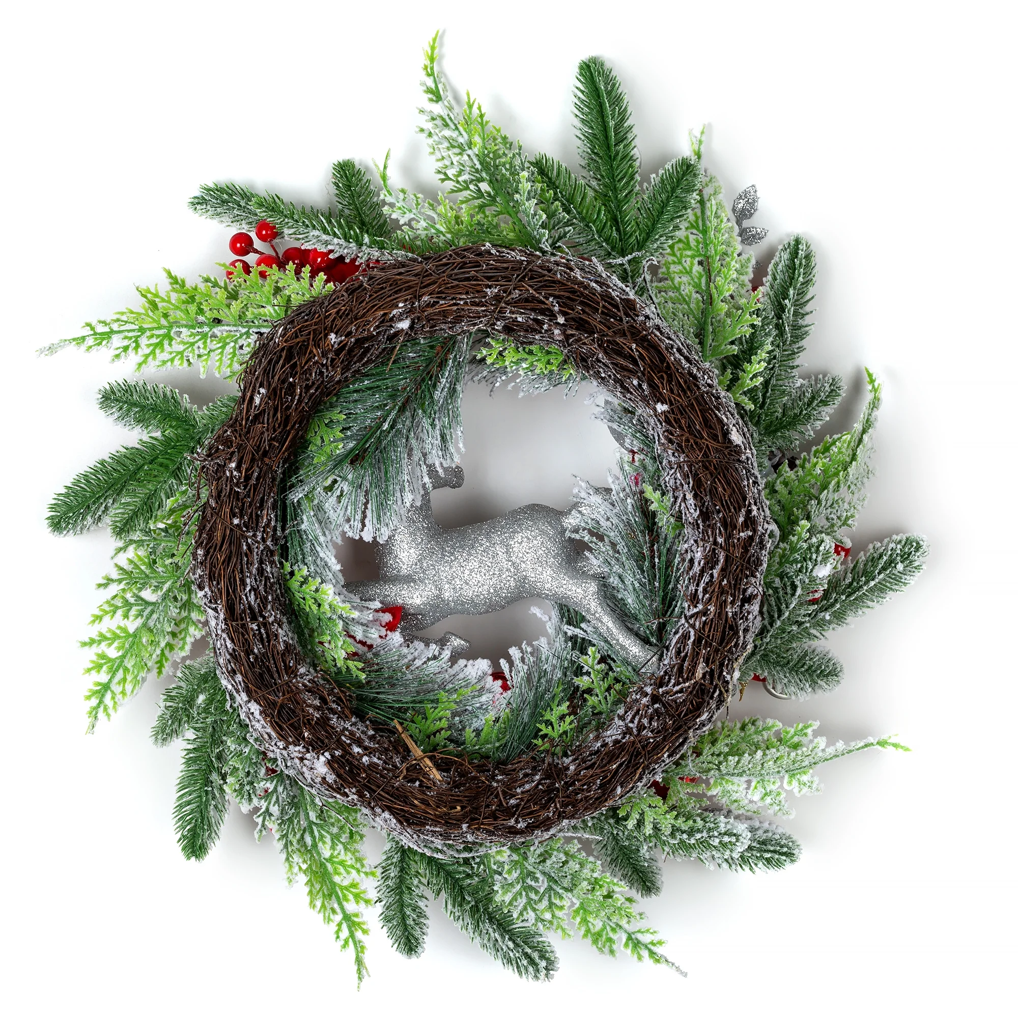 $14.61The artificial Christmas wreath is a symbol of eternal hope and brings good luck to people. 20″ classic Christmas door wreath with a silver and white deer, realistic silver and white flocking, pine cones, red and white Christmas balls and bells, pints of flowers and other Christmas elements. Comes with a 9.8ft LED string of lights. Perfect for Christmas holiday decorations on front door, windows, walls, fireplace, bedroom, kitchen, living room, patio and more. Diverse design, perfect display for winter and Christmas decoration, perfect gift for your family and friends. Pay attention to the size of the product when you place an order, buy the right size for the occasion you want to decorate.