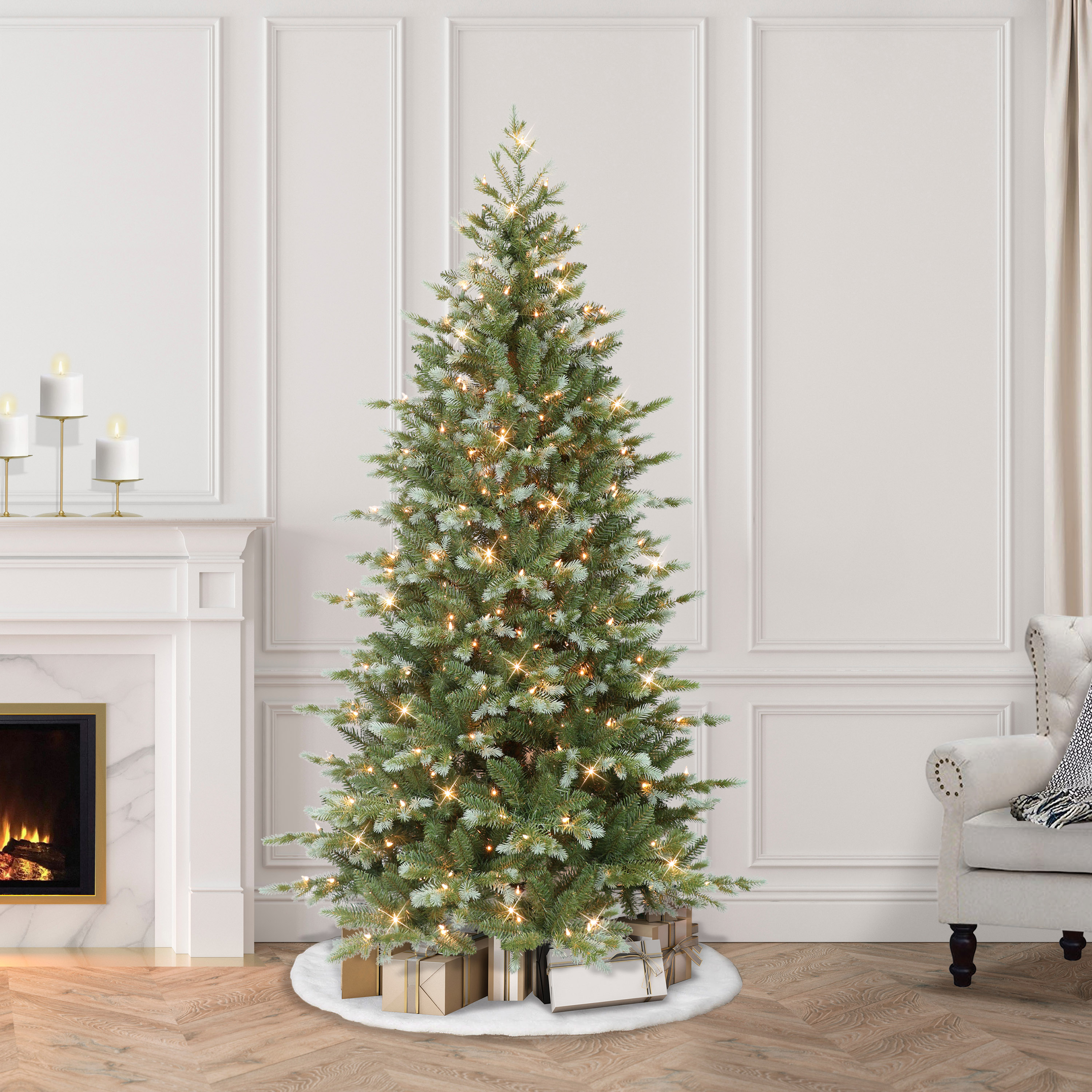 $219.29Original price was: $219.29.$186.61Current price is: $186.61.Set up a stunning Holiday display with this Colorado blue spruce Christmas tree. The green and blue branches add to its charm, and the pre-lit clear incandescent lights lend it a brilliant glow. Deck up this magnificent tree, and let it be the pride of your Christmas season. This gorgeous Christmas tree is sure to be your family tree for years to come!. Product Features: Pre-lit with 350 clear incandescent lights. Bulb size: mini. Bulb type: incandescent. 2080 tips. Additional Product Features: Medium profile tree. Hinged branch construction. UL-certified and approved. For indoor use only. If one bulb burns out, the rest will stay lit. Lights are equipped with a lamp Lock feature, which makes them replaceable, and interchangeable and keeps them from falling out. Easy assembly (including stand). Constructed from flame-retardant and non-allergenic materials. Included sturdy metal base will safely and steadily support. Dimensions: 6.5’ high (from the base of the stand to the top of the tree). 46″ base diameter (at the widest point). Material(s): vinyl/metal/glass bulbs/wire. Note: Branches are compressed for shipment, and need to be fluffed out upon arrival to look like the photo.