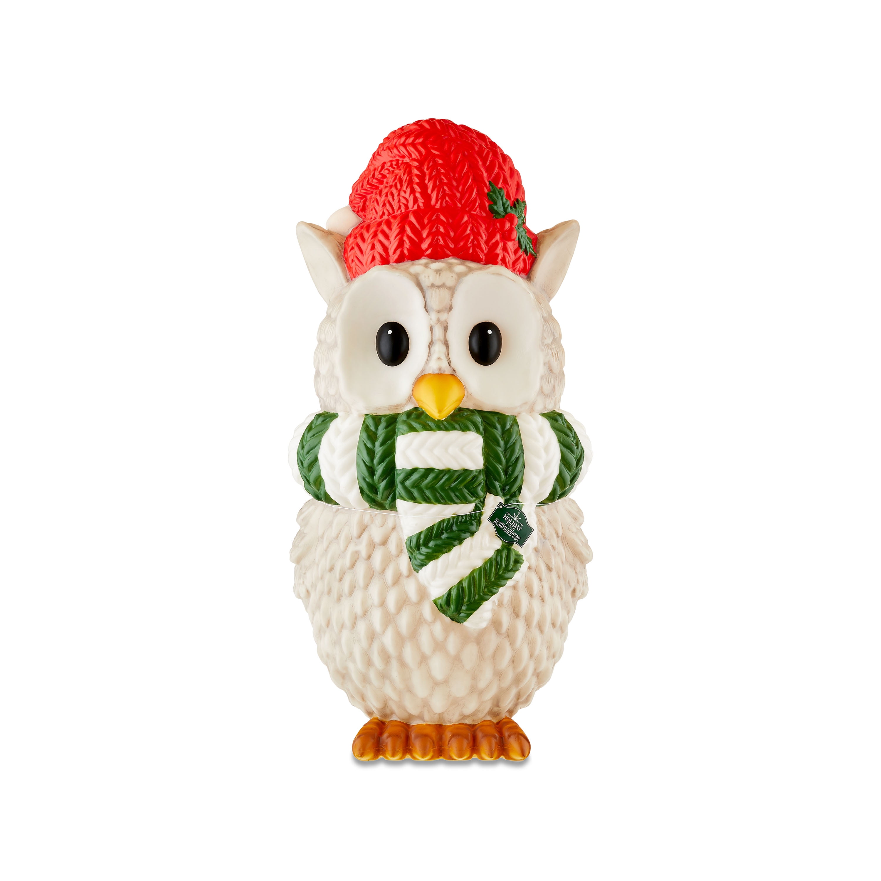 $30.70Our Holiday Time Blow Mold Light-Up Owl will bring a festive touch to holiday decorating. Wearing a colorful hat and scarf, this light-up owl will fill any space with style and holiday cheer. Its festive design makes it a versatile decor piece that complements practically any decor theme. Plus, the convenient flat base design works well wherever you want to place it, whether that’s in your living room, dining room, or entryway. It can be displayed alone for a festive touch or grouped with other decor items to create your own seasonal scene. Looking for more joyful decorations and accessories? Check out other Holiday Time products like lights, Christmas trees, tabletop decorations, ornaments, and more. Whether in your home or office, our Holiday Time Blow Mold Light-Up Owl will be the perfect addition to your space this year.