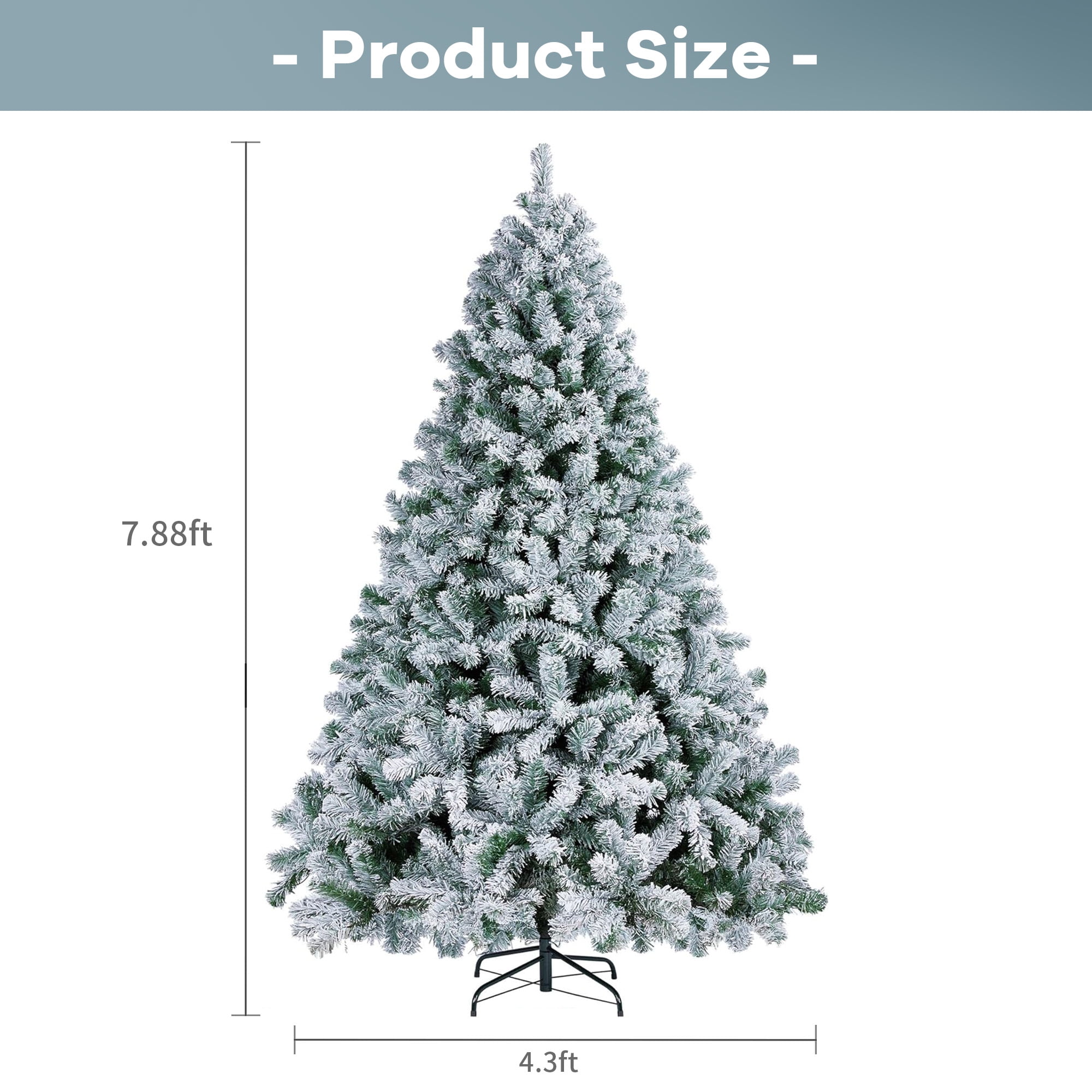 Christmas Tree, Brochao 7.5ft Snow Flocked Xmas Tree with 1100 Branch Tips, Outdoor Indoor Unlit Artificial PVC Holiday Decor