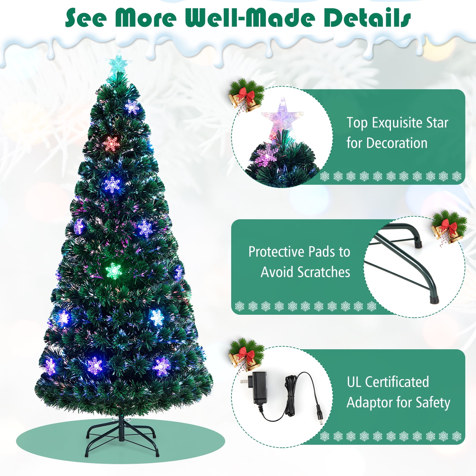 Costway 6FT Pre-Lit Fiber Optic Christmas Tree Multicolor Lights