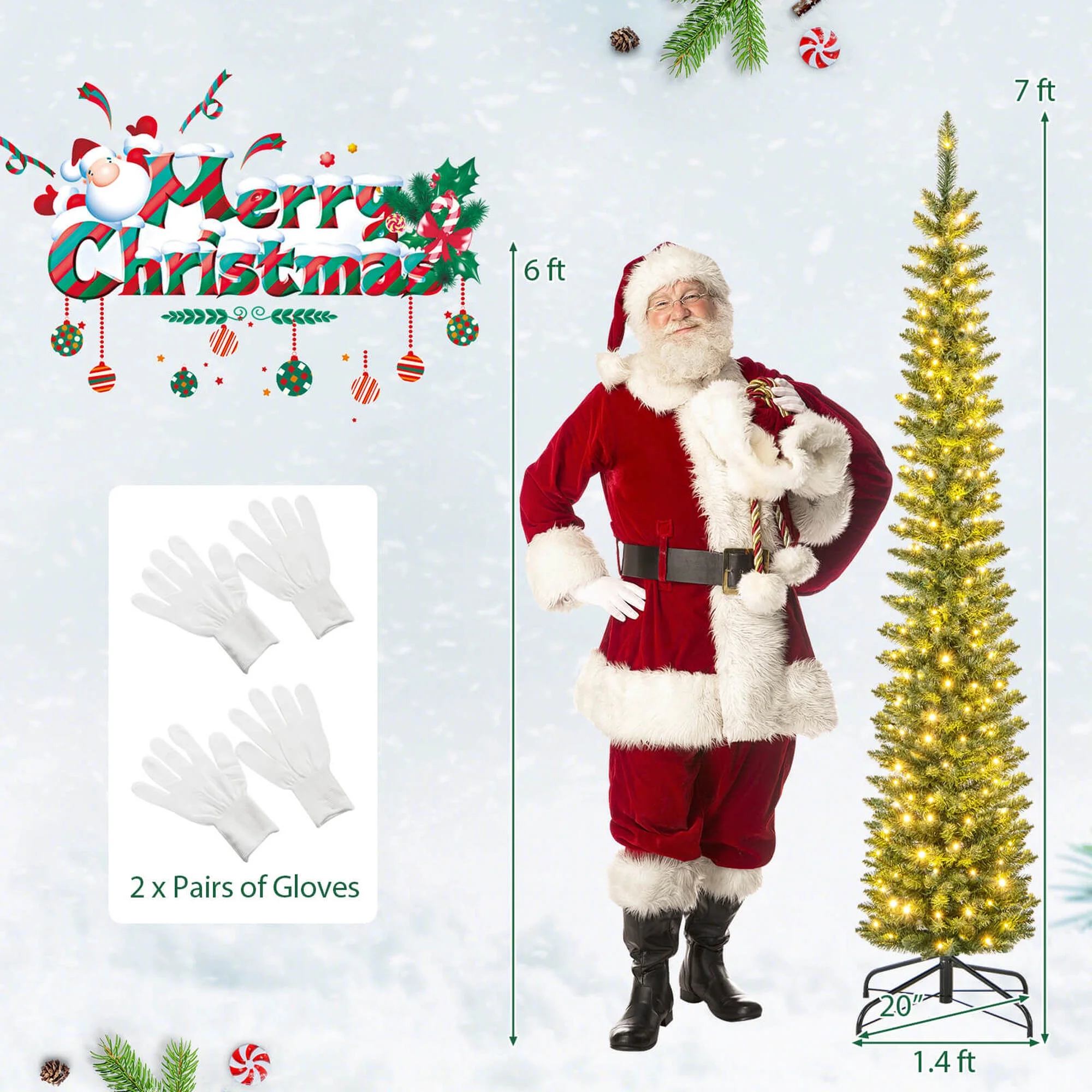 Costway 7 FT Pre-Lit Pencil Christmas Tree with 200 LED Lights & 499 Branch Tips Party