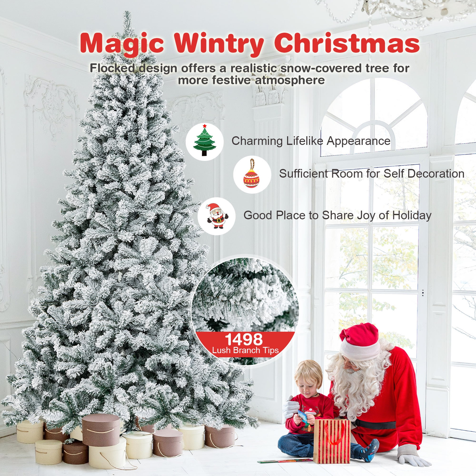 Costway 9ft Snow Flocked Hinged Artificial Christmas Tree Unlit Metal