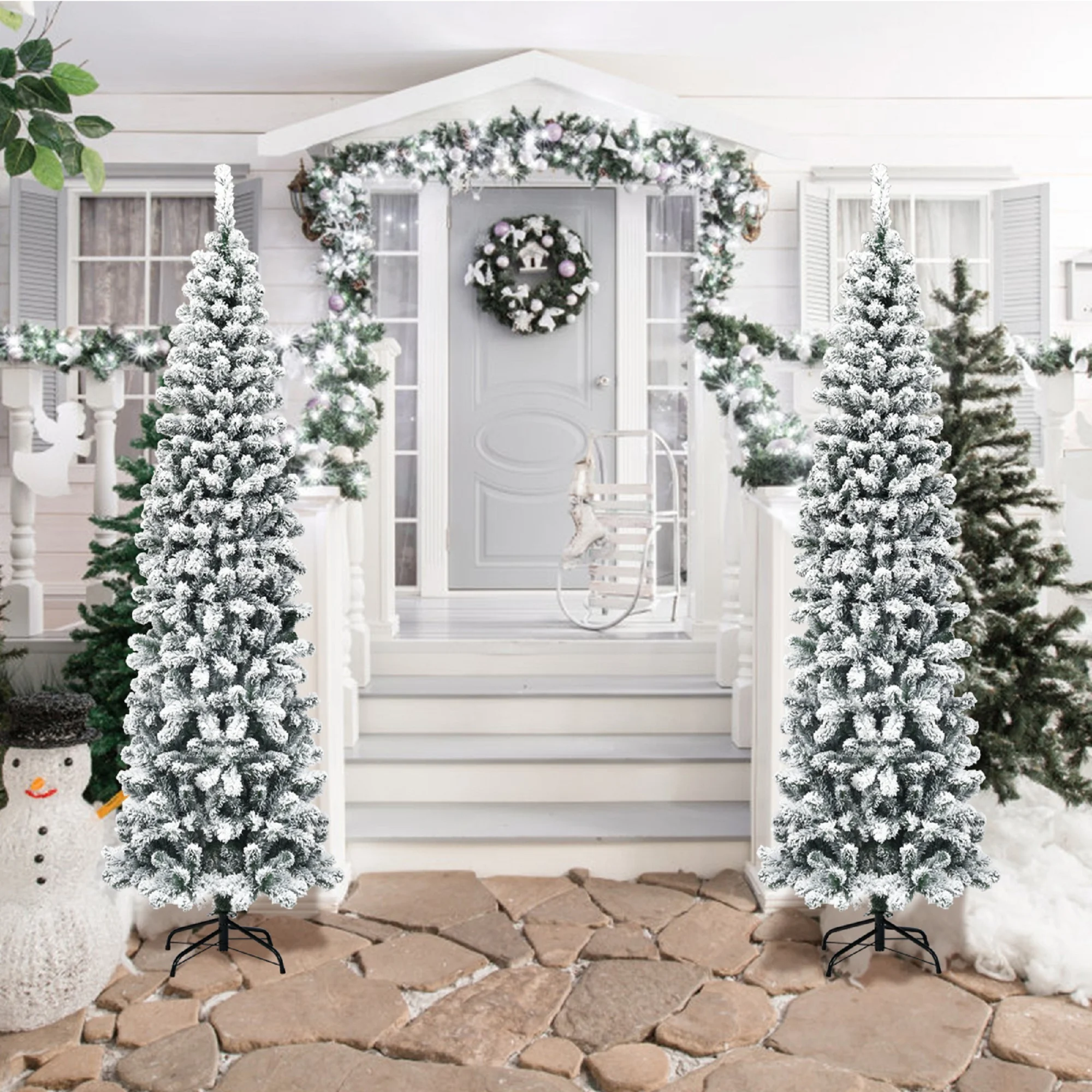 $102.34Original price was: $102.34.$51.59Current price is: $51.59.Transform your living room into a unique winter wonderland with our snow flocked pencil Christmas tree. The tree, crafted with 641 branch tips and snow flocked leaves, is leafy and elegant. It will give you the illusion of a full-bodied genuine tree. High quality PVC branch tips with exquisite craftsmanship will not fall off or fade easily, ensuring long term use. Supported by sturdy metal stand, this artificial Christmas tree will keep standing upright for years to come. At the same time, the metal stand is foldable to facilitate storage. All hinged construction makes the artificial tree easy to set up and fluff. In addition, this Xmas tree can be divided into 3 sections and placed in a storage bag for future reuse easily. With its slim pencil design and realistic appearance, this artificial Christmas tree is perfect for display in corners or small rooms. Add it to the cart and celebrate Christmas in style with our snow flocked pencil Christmas tree. Feature 641 branch tips create a full-bodied look and help simulate a real Christmas tree Snow flocked leaves create a unique wintry feel Slim pencil design is ideal for display in corners or areas with limited space High-quality PVC branch tipswith exquisite craftsmanship will not fall off or fade easily Sturdy metal stand is stable and breakage-resistant Foldable metal stand helps facilitate storage Easy to set up and fluff with hinged design Eye-catching addition for homes, shops, restaurants, etc. Specification Material: PVC + Metal Net Weight: 10.5 lbs Height: 7.5FT Overall Dimension:7.5’(H)×2.2’(W) Number of Tips: 641 Package includes: 1 XPencil Christmas Tree