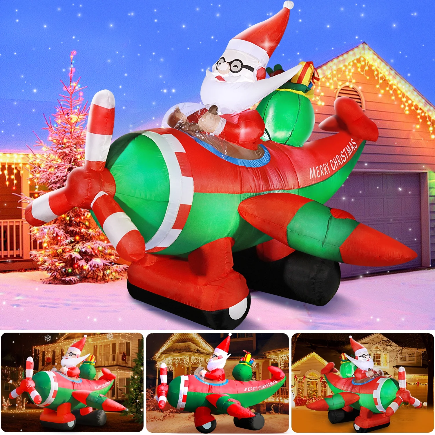 $60.19Bring the magic of Christmas to your home with the DeeKom 6′ Inflatable Santa Claus on Airplane Decoration. This delightful blow-up decor features a jolly Santa Claus piloting a festive airplane, complete with built-in LED lights that illuminate the scene and create a captivating display. Designed for easy setup, this self-inflating decoration can be quickly set up indoors or outdoors, transforming your space into a winter wonderland. Crafted with high-quality, weatherproof materials, this Christmas inflatable is built to last, ensuring years of holiday cheer. Whether you’re decorating your lawn, patio, or indoor living area, this charming DeeKom inflatable is sure to spread joy and delight throughout the holiday season.
