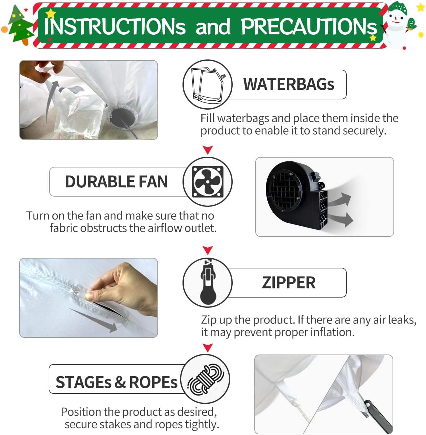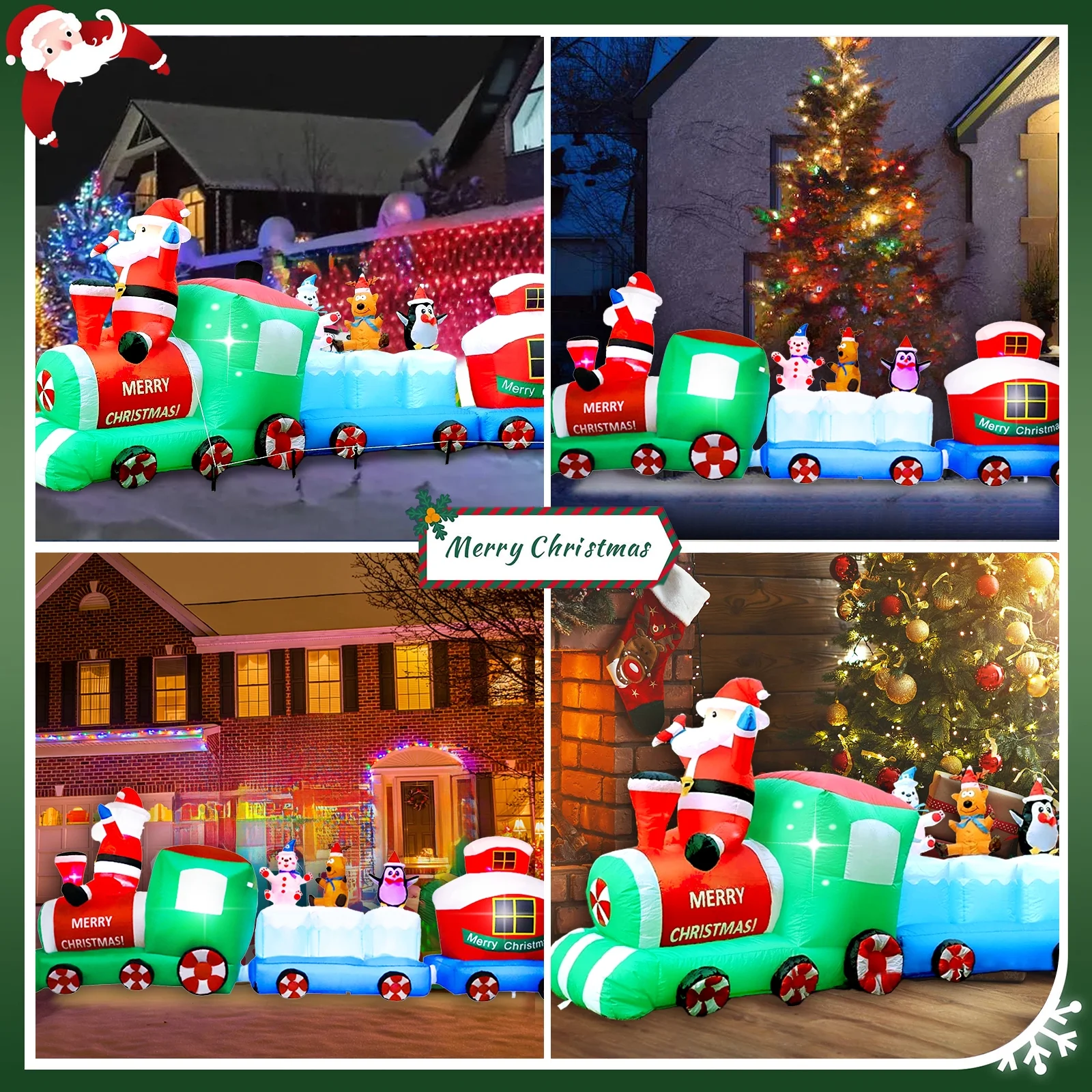 $99.73🎅🏻DAKIMOE 9FT Christmas Inflatables Outdoor Decorations – This christmas inflatable decorations is made from durable, water-resistant polyester fabric, guaranteed to withstand harsh weather conditions and ensured to be suitable for outdoor indoor use. It features a waterproof fan, plugs in for quick inflation, and easily deflates for convenient storage. Excellent appearance design, paired with bright and energy-saving LED lights, creates brilliant lighting effects and unique visual impact. 🚂FAST INFLATION & DEFLATION – This eye-catching decoration requires minimal effort to set up with few minutes by the built-in fan and charger; Don’t worry about the storage problem, the great design allows people to store quickly and easily with the included. 🐧 HOLIDAY DESIGN – Made of high quality polyester material, this Santa ornament is safe and durable to use; The extended power cord is suitable for you to put it in different places, no matter indoor or outdoor, such as the garden, lawn, backyard, courtyard, patio, and so on; Featuring low noise, our product only makes a little noise when operating in the room; If put in the outdoor, the noise can be neglected. Product parameters: Type: Inflatable christmas Santa Penguin on Train Material: polyester Applicable holiday: Christmas Size: 9 ft Package size:28.5x28x14.5cm/ 11.22×11.02×5.7 inch Gross weight:1.445kg/ 3.18 lb The Package Include: 1 x Christmas model 2 x water bags 1 x Set of floor nails 2 x Pull ropes Christmas inflatables is one of the perfect choices for decoration in Xmas party. It is suitable for outdoor, gardens, and courtyards. It can create a wonderful atmosphere and leave an warm memory for you and your friends!