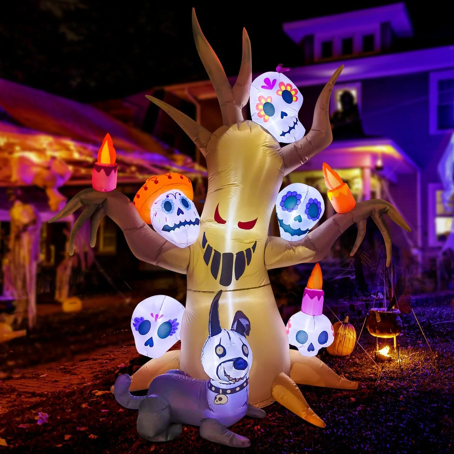 DeeKom 8′ Halloween Inflatable Dead Tree Decorations, Blow up Spooky Tree Decor Build-in LEDs