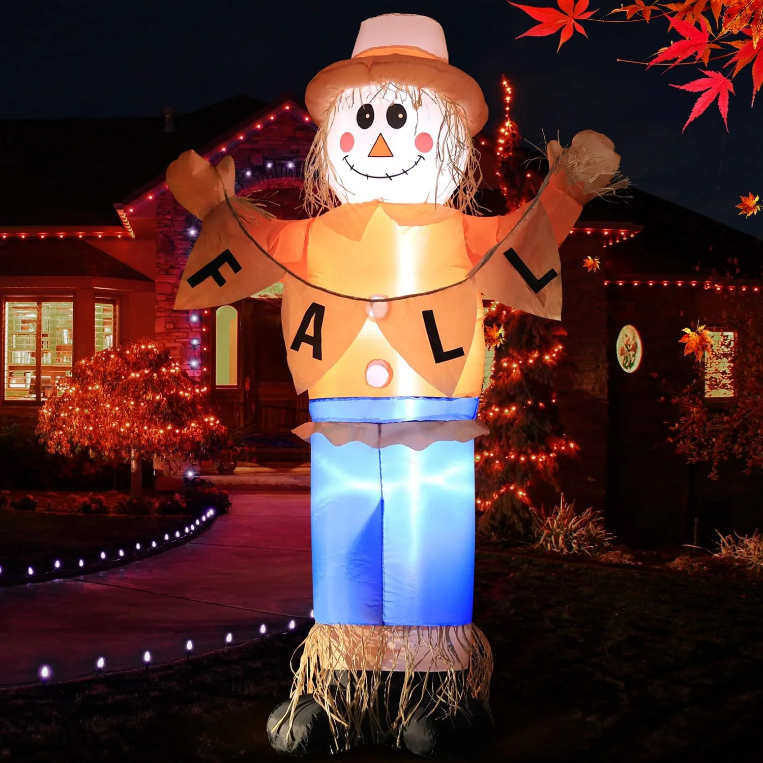 DeeKom 6′ Fall Inflatable Scarecrow Decorations, Blow up Thanksgiving Decor Build-in LED Lights, Inflatable Outdoor Holiday Yard Decorations