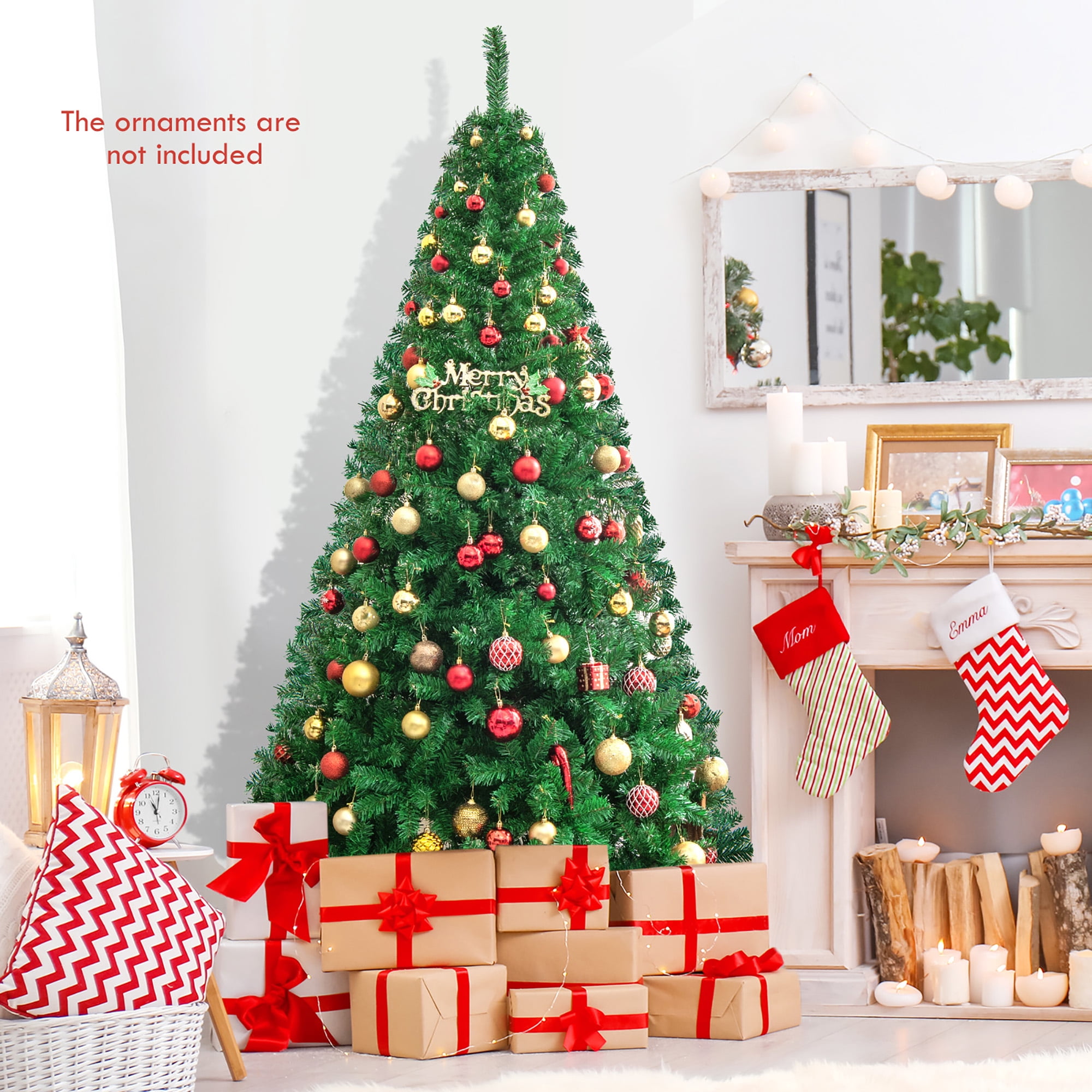 Gymax Green Hinged Full Hinged Artificial Christmas Tree, with Metal Stand 7′