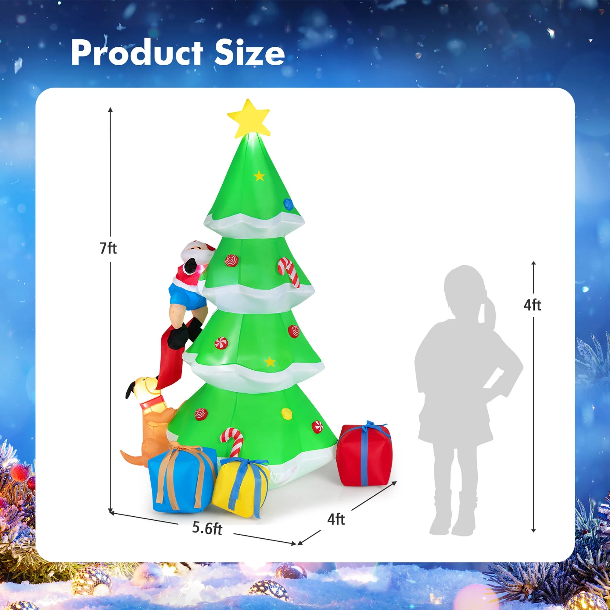 Gymax 7FT Self Inflatable Santa Claus Climbing Tree Christmas Decoration w/ LED Lights