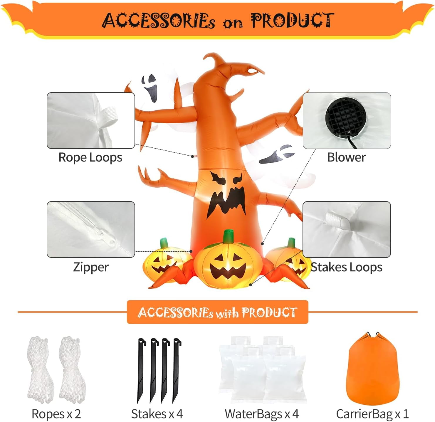 Halloween Inflatable Outdoor Decorations, 8Ft Blow up Spooky Dead Tree Decor Build-in LEDs, Yard Lawn Garden Festivals