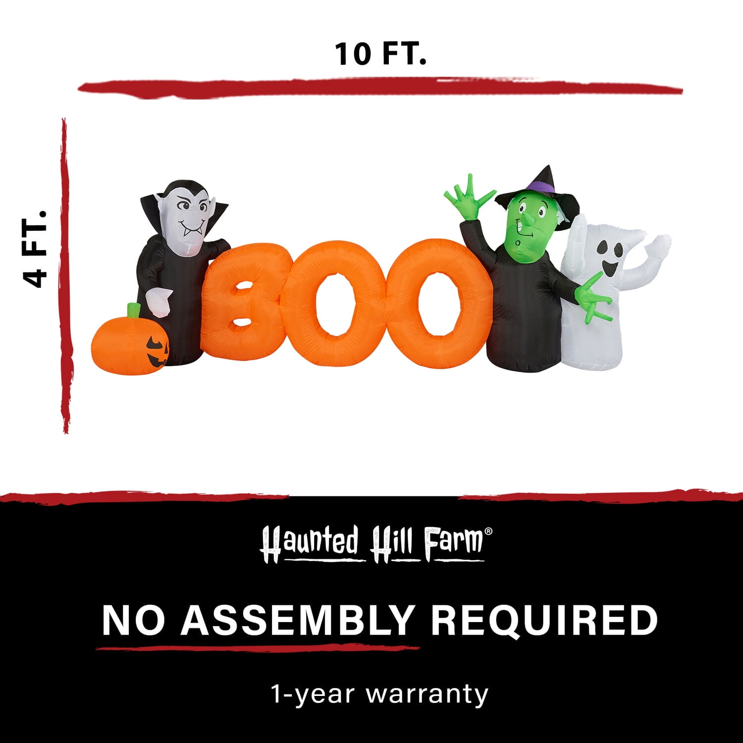 Haunted Hill Farm 10 ft Wide BOO Sign with Lights Halloween Blow Up Inflatable, HIBOOSGN101-L