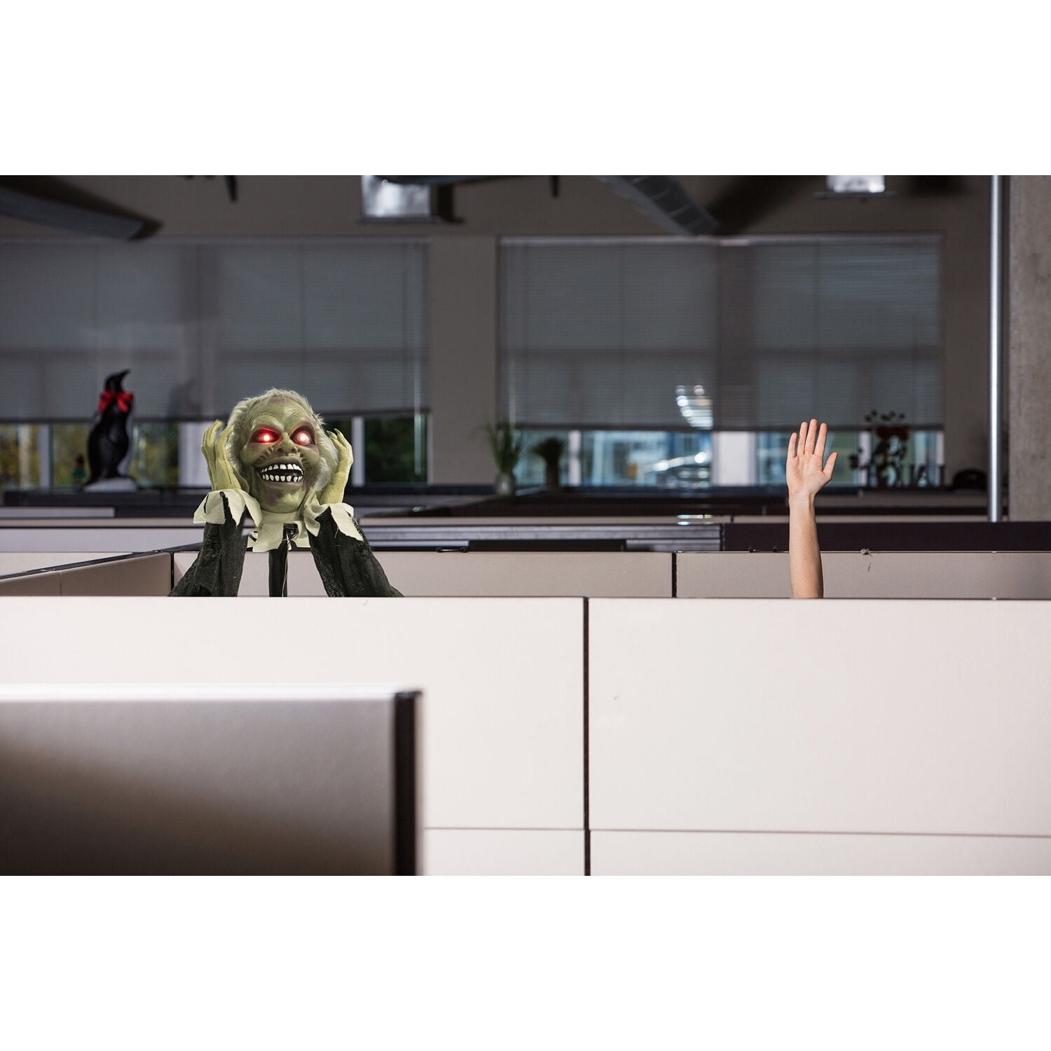 $51.59Be afraid. Be very afraid of Haunted Hill’s Pop-Up Groundbreaker Collection. These blood curdling creatures are sure to terrify any trick-or-treaters, co-workers, or customers. Draco is just an average corporate ghoul who worked himself to death. His flashing red soulless eyes are resulted from the endless hours his boss demanded. He is the perfect center-piece for your office desk decor and could be the most interesting new member to your team. Dressed in a suit and tie, he’s already prepared for to work! When movement or sound approaches, Draco’s head pops up in the most chilling and thrilling fashion. His ominous half figure will fit seamlessly next to your computer or on any counter space, whether suspended by his hanging hook or standing alone. His haunting screams and eerie music scare victim after victim– maybe even your boss! Draco is the cruel finishing touch for your haunted office this Halloween! Haunted Hill Farm 20 in .08lbs Pop-Up Animatronic Ghoul, Halloween Decor, HHFJZOMB-1LSA