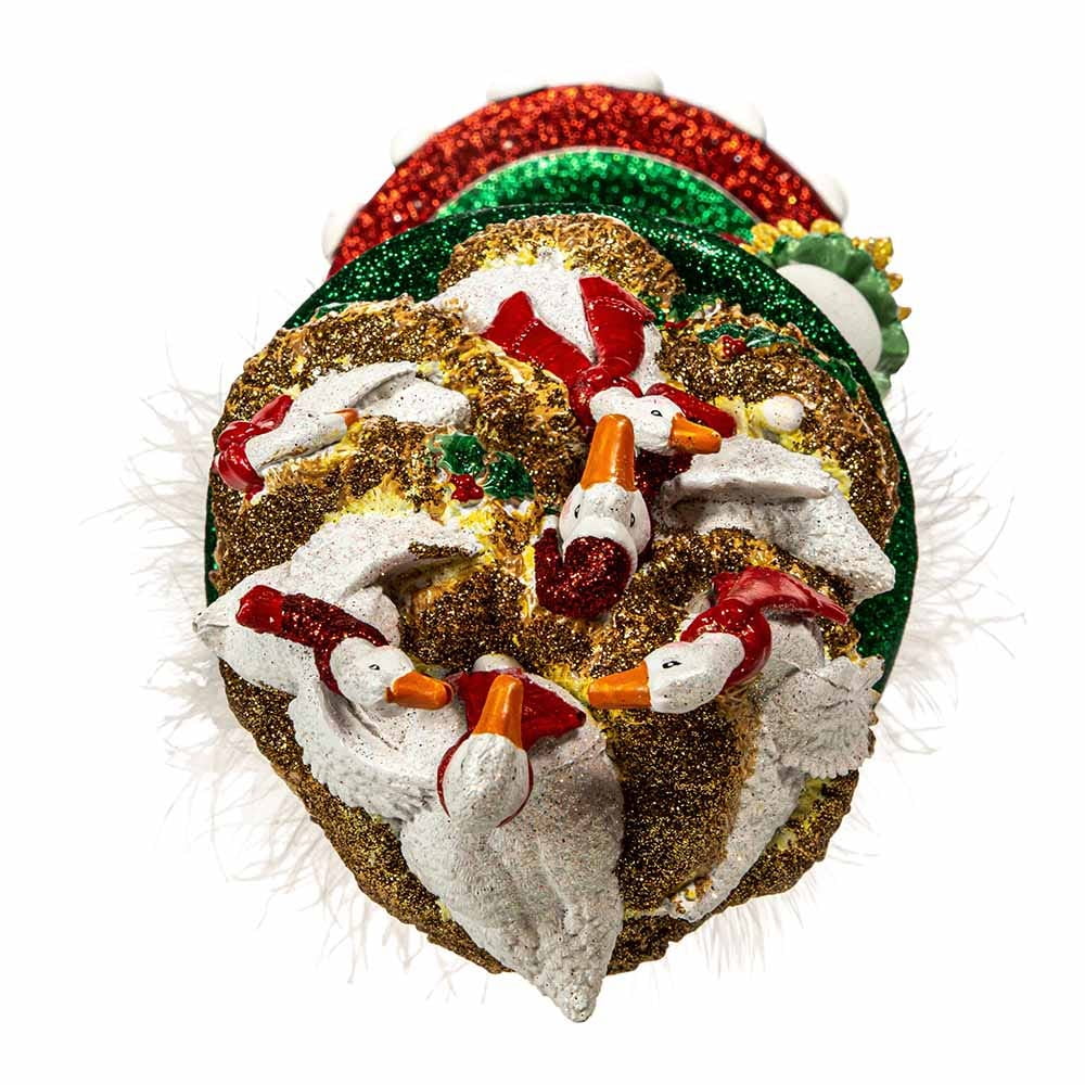 $100.28Hollywood Nutcrackers is a whimsical collection of nutcrackers created exclusively for Kurt S. Adler, Inc. and features an assortment of designs that put a unique, vibrant, memorable twist on traditional nutcrackers. This 18-inch Six Geese A Laying Nutcracker is part of the 12 Days of Chritmas collection. It features six geese atop a gold glittered nest hat with a basket of eggs in one hand and an egg topped staff in the other. The nutcracker stands on a red and green glittered base decorated with white eggs. This nutcracker is a stunning addition to any holiday décor