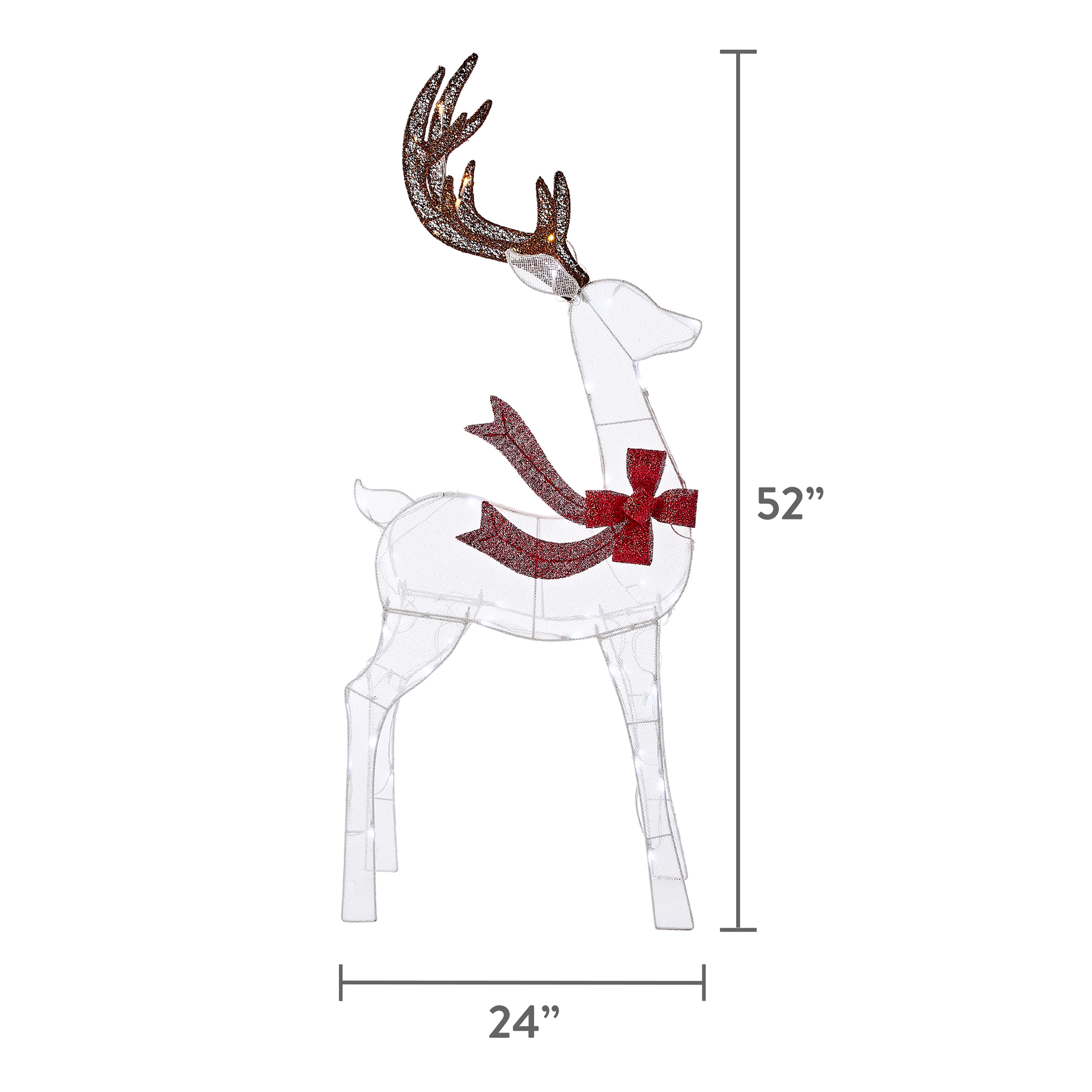 $51.60This Holiday Time Lighted 3-Piece 2D Light-up White Deer Family brightens any space, indoor or outdoor with glowing cool white LED lights. The set includes one (1) 52-inch buck, one (1) 42-inch doe, and one (1) 28-inch fawn and features 120 cool white LED lights. Beautiful on porches, patios, yards, and landscaping, or indoors in the entry, large rooms, and so many more possibilities. This set of 3 2D white deer family is sure to be a head-turner wherever you place it. Pair with other Holiday Time decorations to bring shimmer and shine to your holiday season.