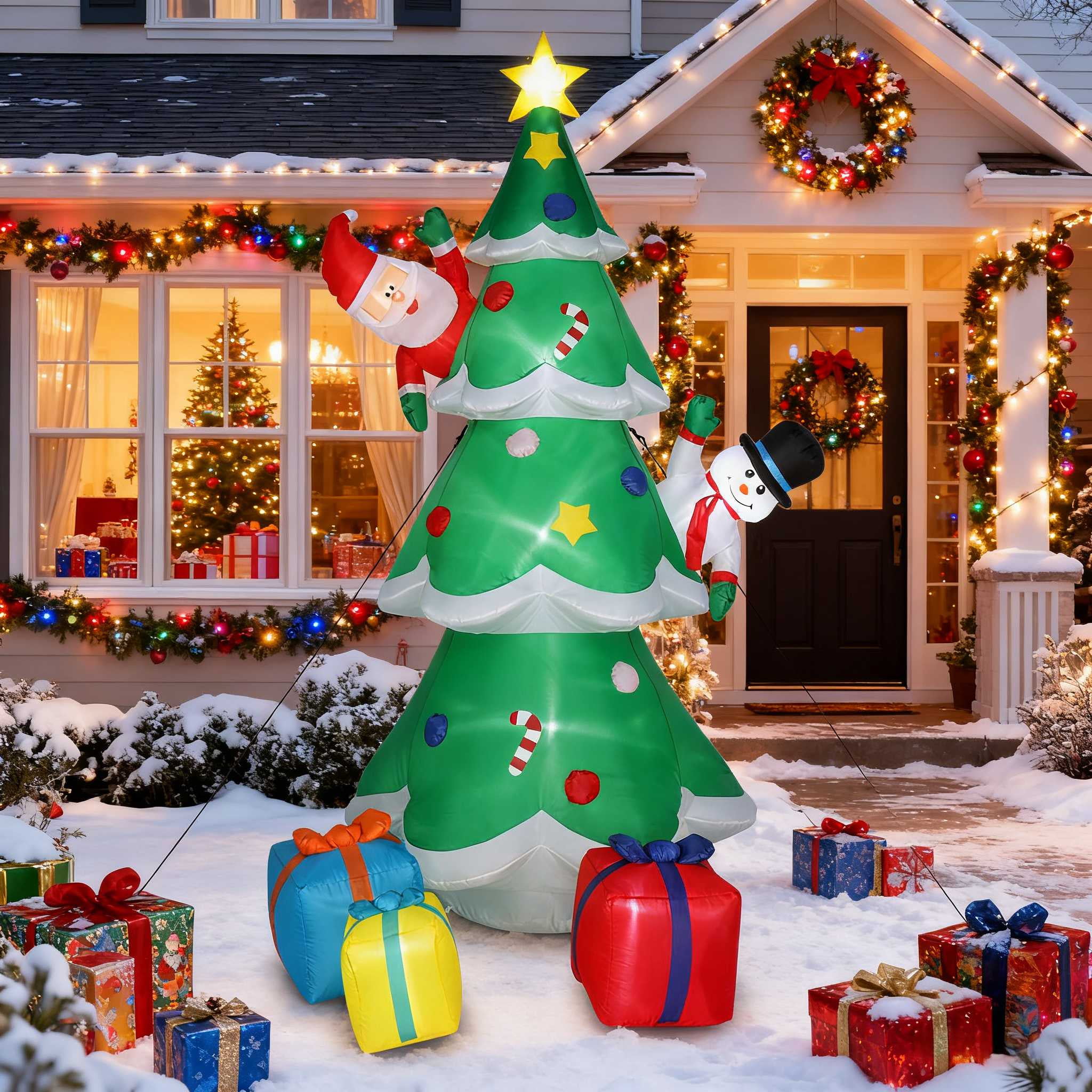 Ktaxon 8ft Inflatable Christmas Tree Decoration LED with Santa Claus,Snowman,Boxes Blow Up Yard Decoration