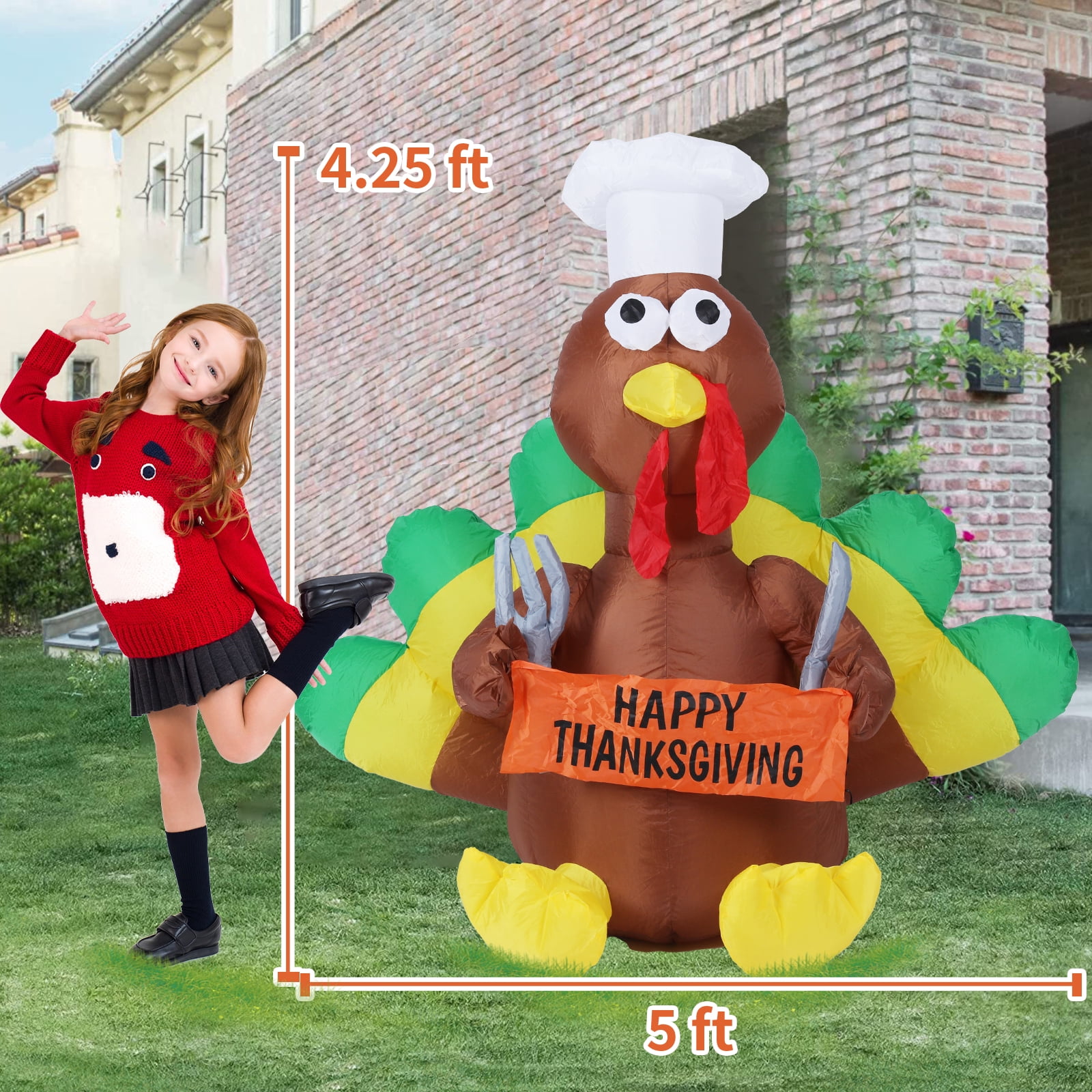 5FT Long Happy Thanksgiving Inflatable Lighted Turkey Family Blow up Outdoor Lawn Yard Decoration