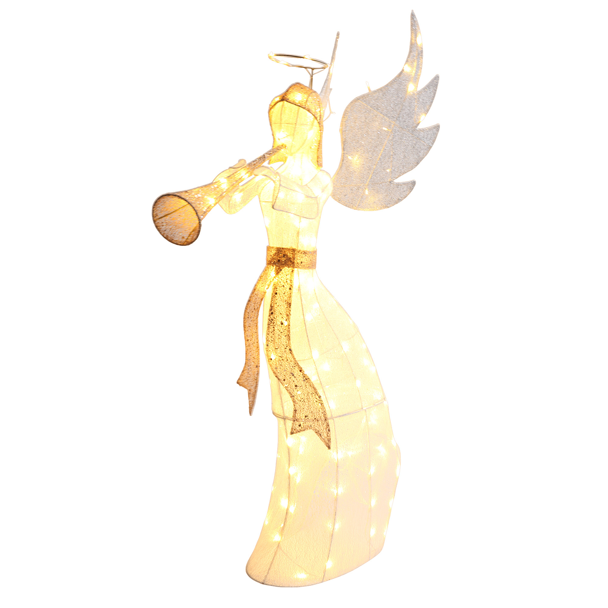 Masiis 4.9ft Lighted Outdoor Angel Christmas Decoration, 3D Pre-Lit Winged Holiday Figure for Lawn with 120 LED Lights