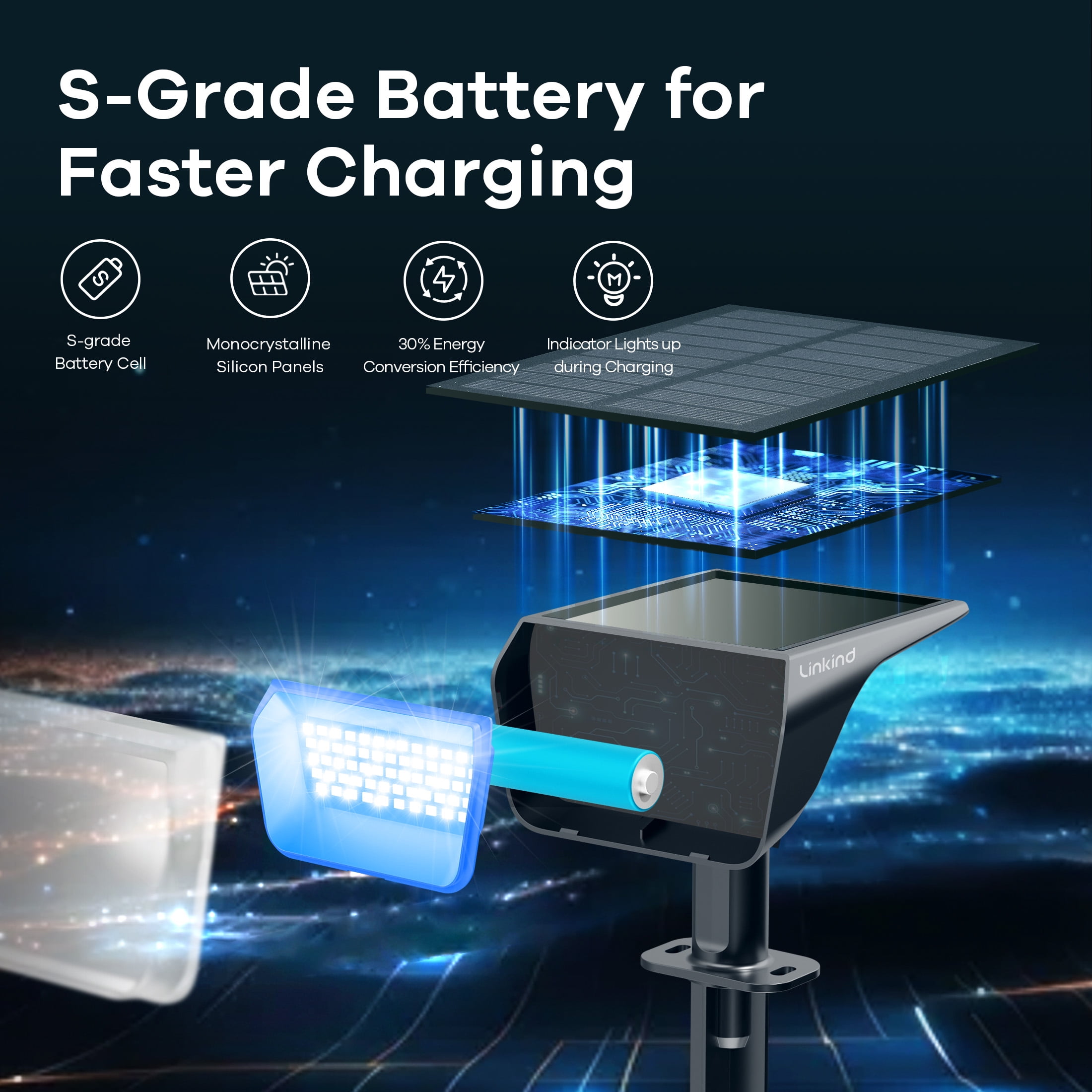 $59.33Original price was: $59.33.$34.39Current price is: $34.39.💡Linkind solar lights feature a versatile color-changing system, offering not only standard colors, but also Halloween-specific pumpkin orange and 6500K cool white. With just one click, you can easily switch between 10 color modes, including red, pumpkin orange, yellow, green, blue, indigo, purple, 2700K, 6500K, and color cycle mode. When you’re done using the light, simply press and hold the button for 3 seconds to turn it off. 💡The solar light is equipped with 50 super-bright LEDs and a unique anti-glare frosted housing. It features a wide lighting angle of 110°, providing high-quality garden lighting all night long. 💡The built-in 1500mAh lithium polymer battery is charged by solar energy during the day and automatically lights up at night. These solar spotlights boast an amazing energy conversion rate of up to 30%. Enjoy low electricity bills from solar energy. 💡Linkind outdoor solar lights are made of high-quality ABS and PC materials and produced to the highest standards to ensure that they can work properly in temperatures ranging from -20°C to 45°C. They are also waterproof, heat-resistant, frost-proof, and designed not to fog up. 💡Linkind landscape spotlights are perfect for many outdoor areas, including garden walls, garages, lawns, patios, driveways, and more. No messy wires or plugs are needed; simply use the included screws to mount the solar light on any exterior wall or insert it into the ground. ☀️Two working modes for different weather conditions: 📍High-efficiency mode is recommended for use in the sunny summer. 📍Power saving mode saves energy but reduces brightness to optimize the usability of the device in winter. 📍To switch between the two modes, press and hold the power button for 5 seconds when the light is off, and the light will flash 3 times (high-efficiency mode) or 2 times (power saving mode). Note: Before first use, turn off the light and allow it to charge in direct sunlight for 48 hours. This will ensure the product is fully charged and ready to use. Installation Tip: Continue tightening the knob until the solar light is adjustable on the pole.