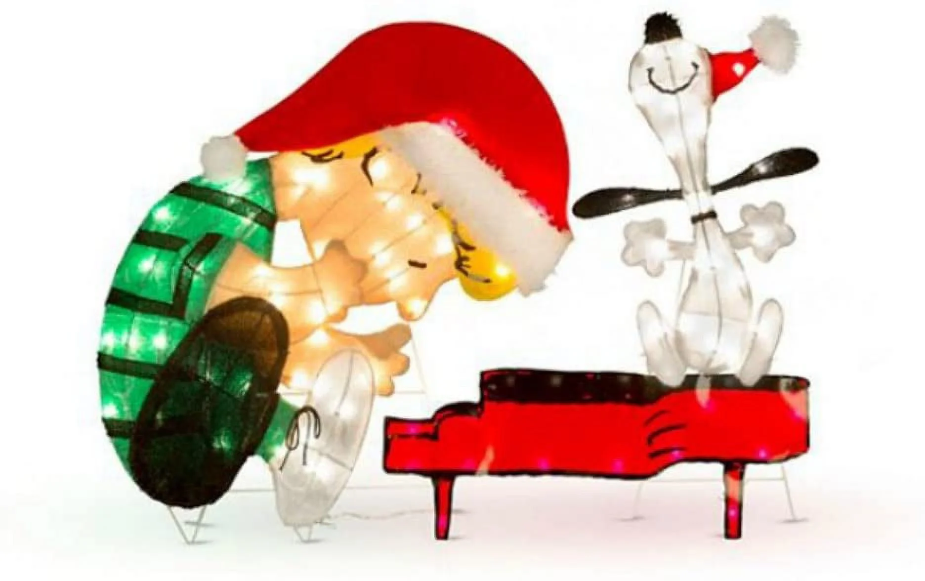 $77.39Invoke nostalgia with the Lighted Schroeder and Snoopy Peanuts Christmas Decorations. Display this classic Peanuts scene in your yard for all to enjoy or in your home to bask in the nostalgia! Banging away on the keys (in deep concentration), Schroeder plays his happy tune, much to the delight of Snoopy . This pair of holiday decor features a weather-resistant metal frame, fuzzy fabric, and 5mm warm white. Schroeder and Snoopy light up with 80 LED mini lights and truly captures Snoopy’s glee as he sits on the piano. The 2D holiday decorations are suitable for indoor or outdoor use. Schroeder and Snoopy: 32″W x 5-1/2″D x 24-1/2″H